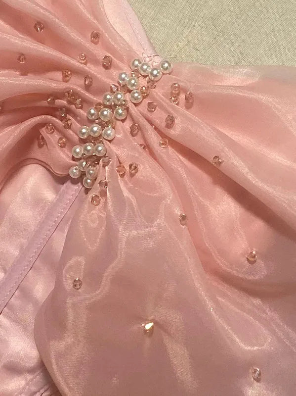 VENUS PINK OFF-SHOULDER MESH PANEL A-LINE MINI DRESS