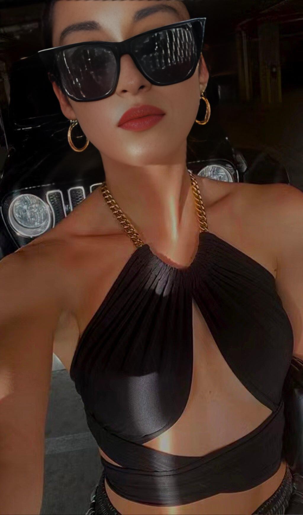 Get ready to make a bold fashion statement with our Vest with Metal Chain Hanging Neck Top in Black. Order now and be the center of attention at your next evening party!