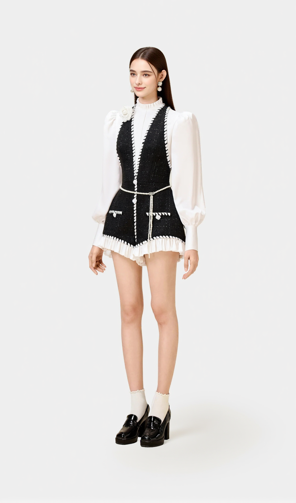 vicky Halter Tweed Shirt Romper