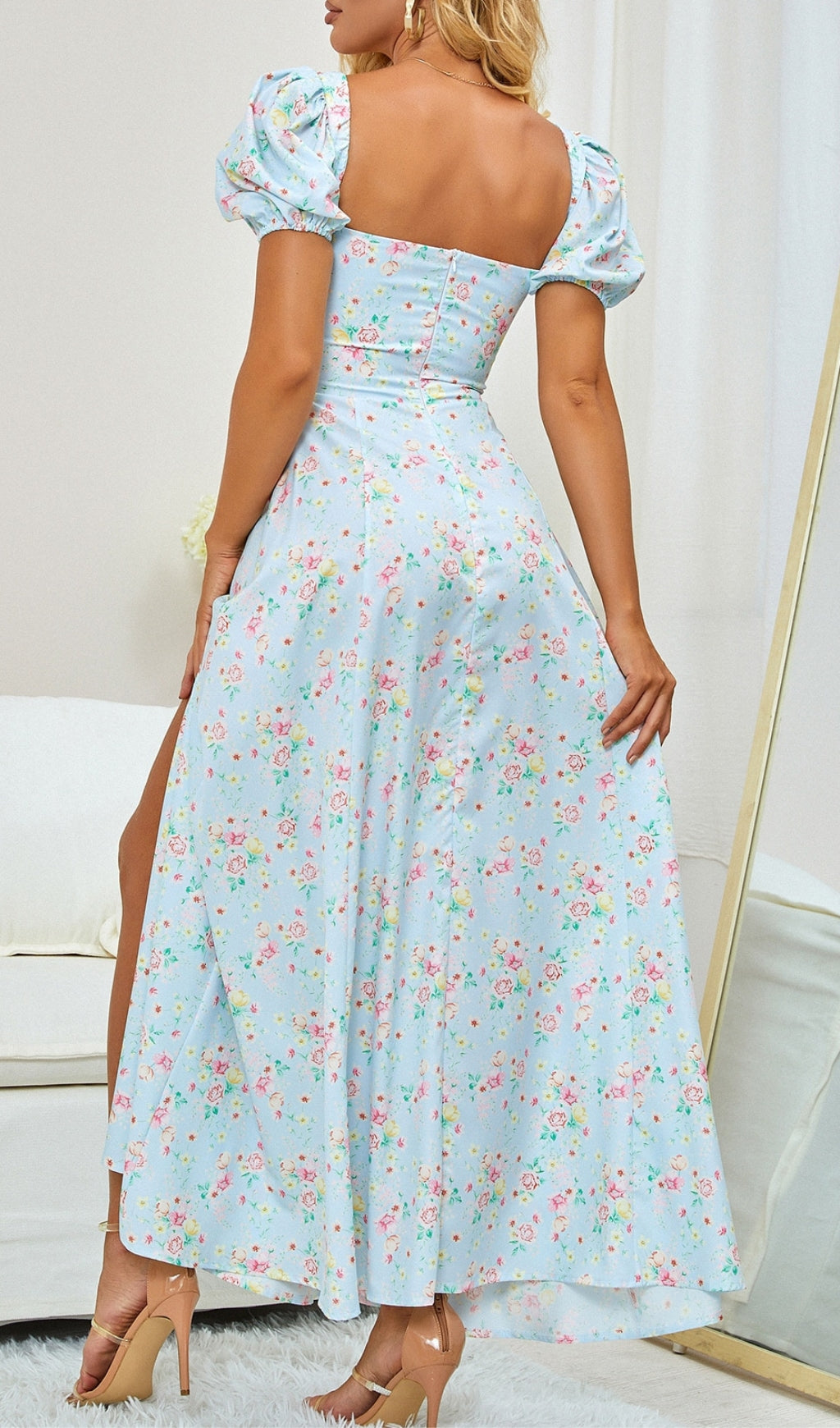 This VINTAGE FLORAL PUFF SLEEVE MIDI DRESS IN BLUE will have all heads turning at your next event. Add a bit of romance to your wardrobe with this gorgeous floral piece - with its puff sleeves and midi length, you'll be ready to step out in style. Get ready to be the belle of the ball!