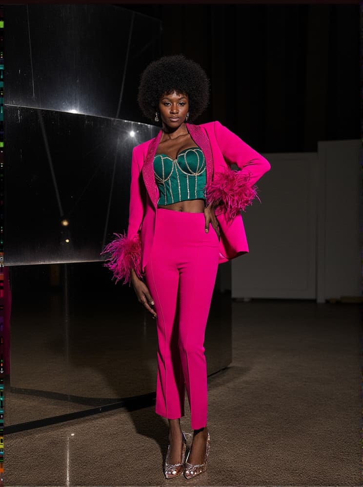 Make a show-stopping entrance with this Viola Rhinestone Feather Blazer. Feel luxurious and glamorous with sparkly rhinestones and soft feathers. Be ready to stand out in any event – create moments that will make a lasting impression!