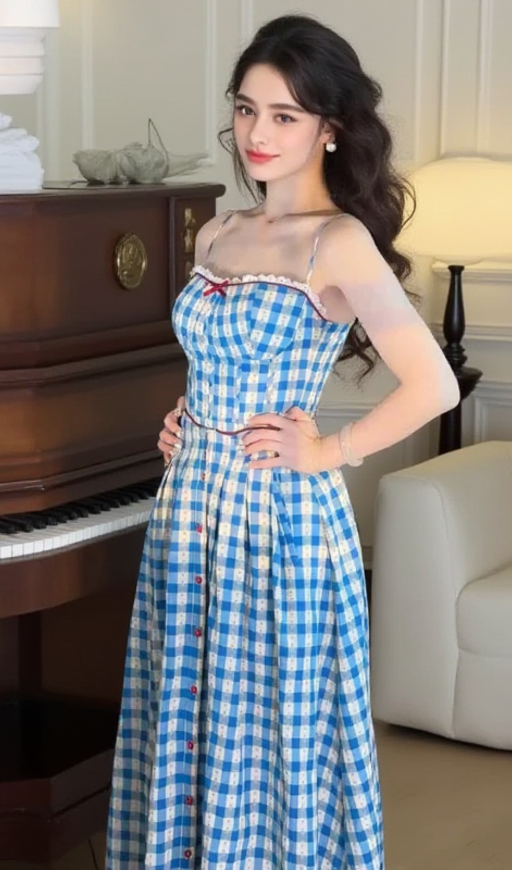 The virginia plaid strap maxi dress in blue is a perfect addition to your wardrobe. Made with high-quality fabric, this dress features a timeless plaid pattern and adjustable straps for a comfortable and flattering fit. A must-have for any occasion, this dress will surely elevate your style with its classic design.