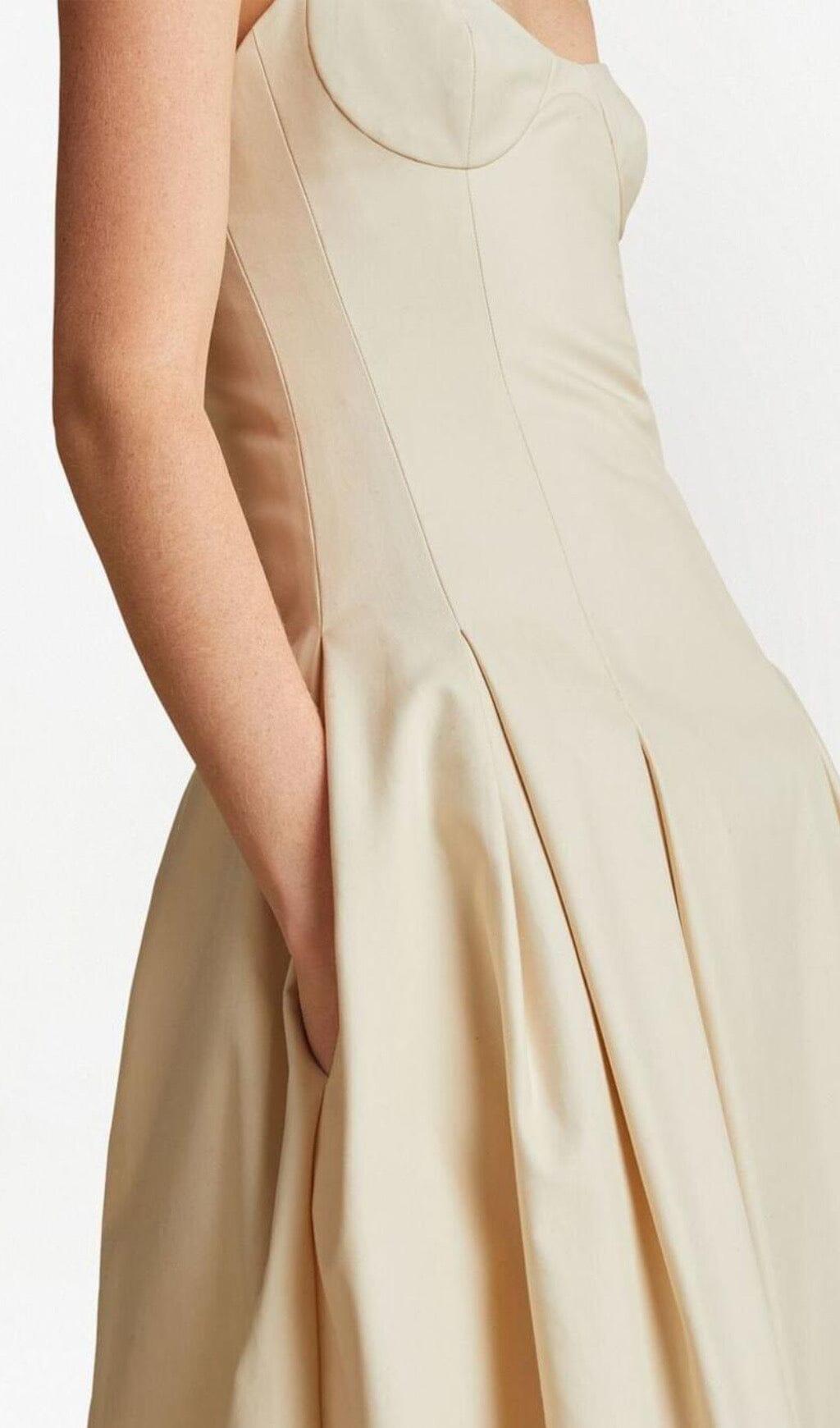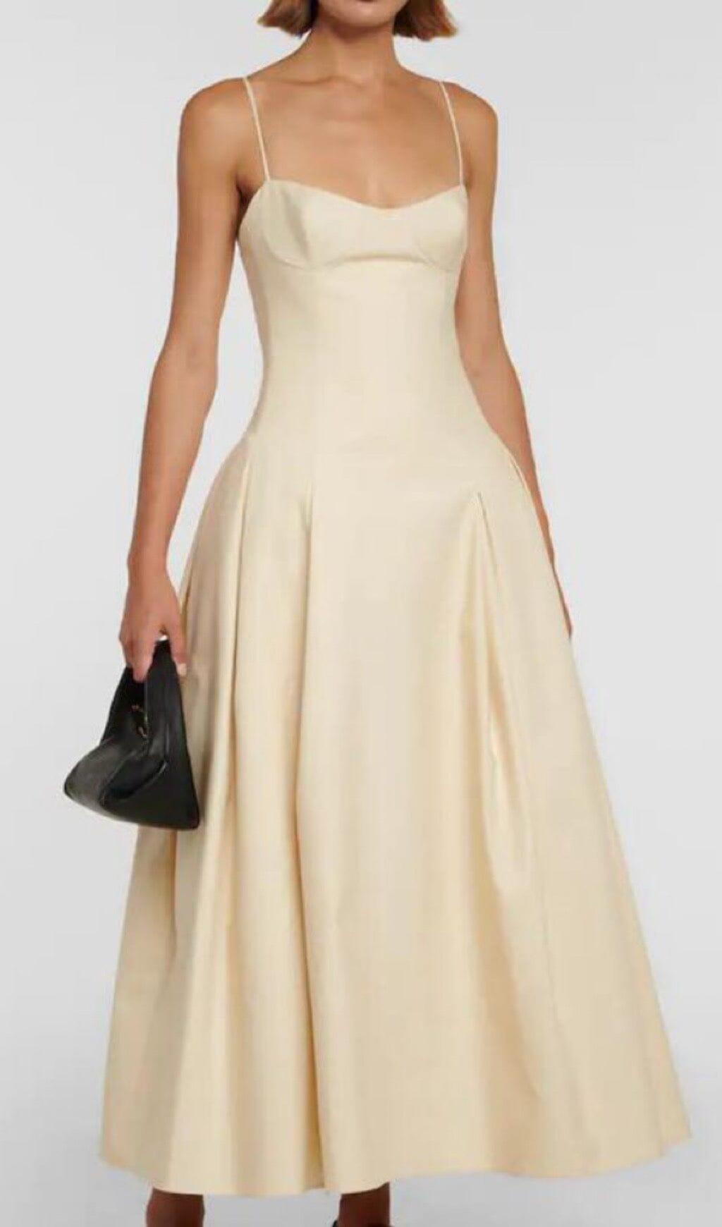 WAIST-TIGHTENING MAXI DRESS IN BEIGE