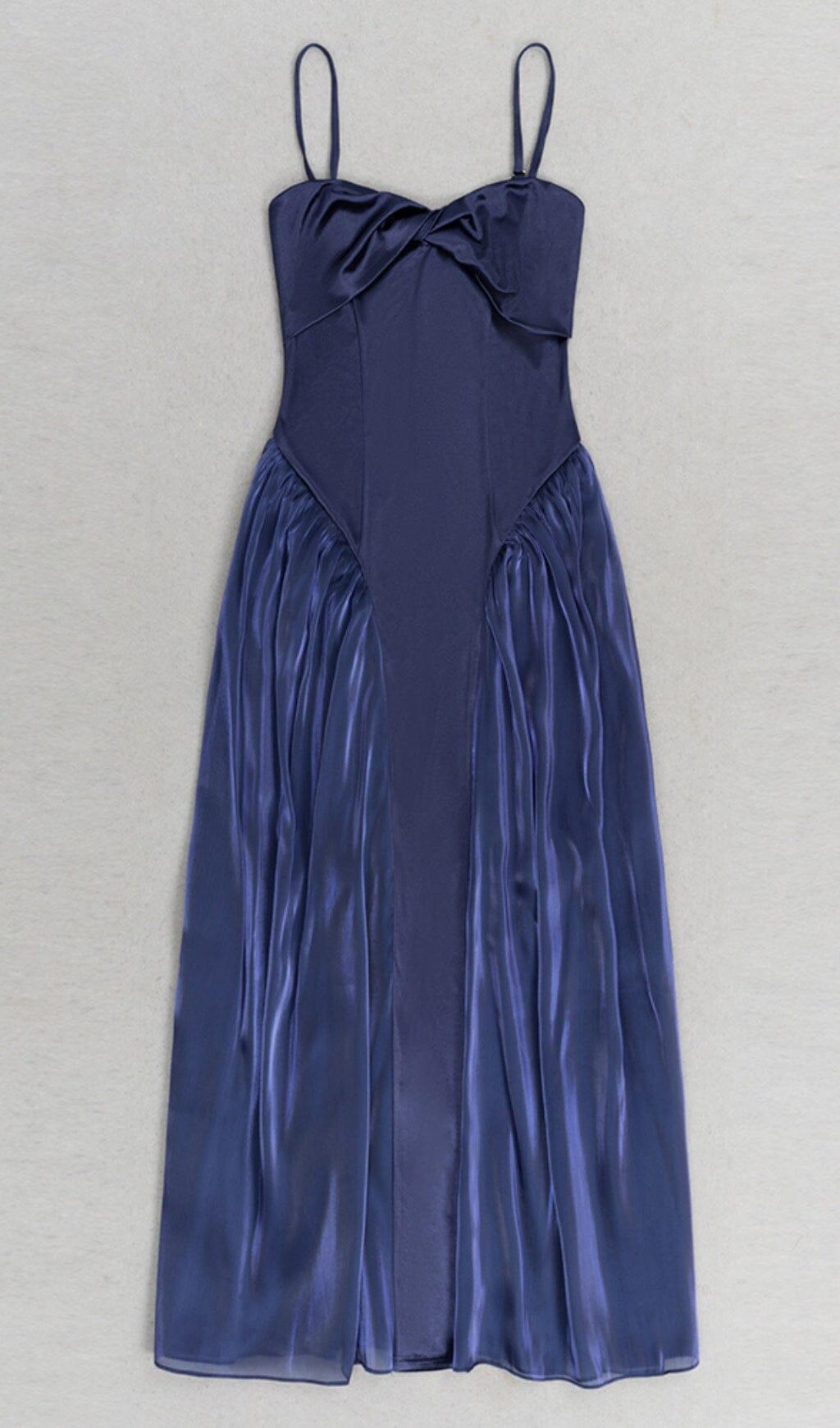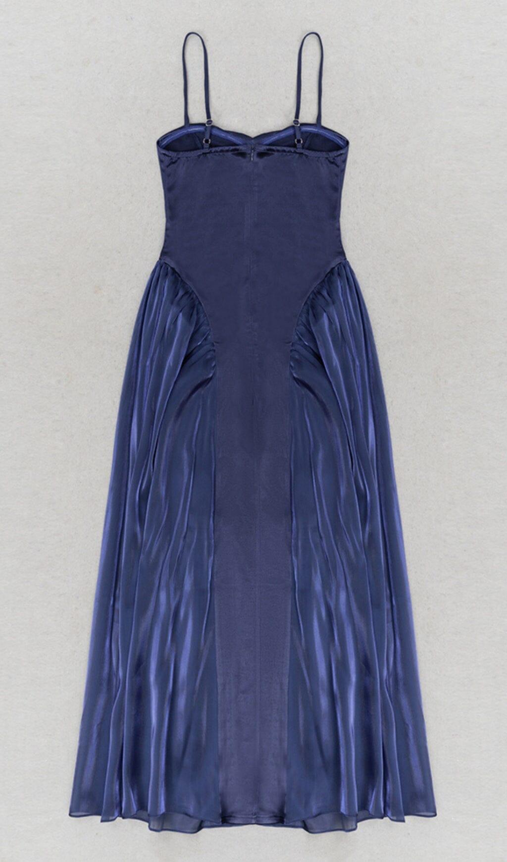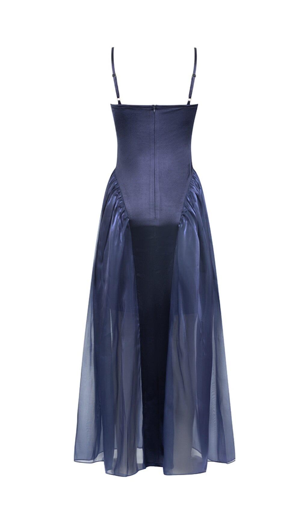 WAIST-TIGHTENING MESH MAXI DRESS IN ROYAL BLUE