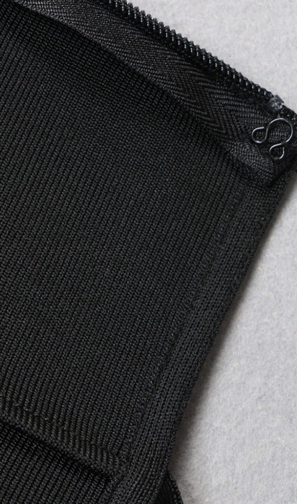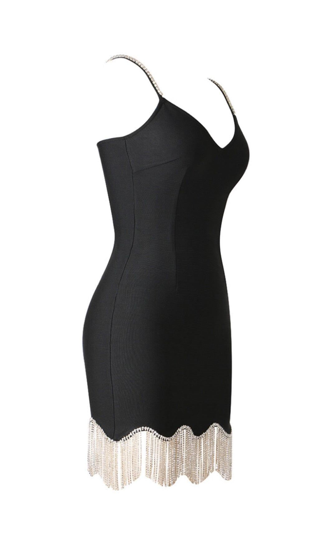 WAVY FRINGED SUSPENDER DRESS IN BLACK