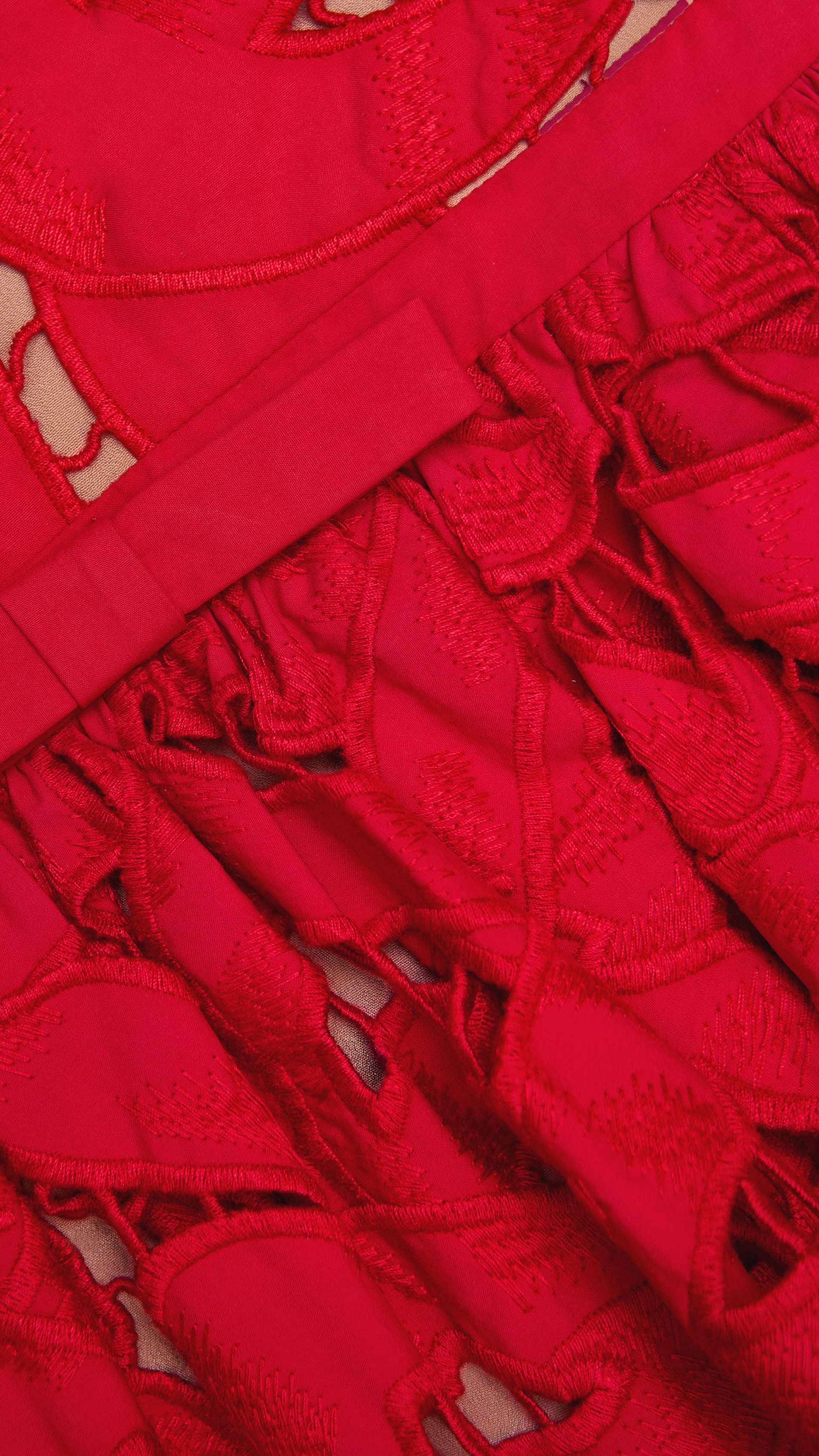 WENDY RED BOW EMBROIDERED MIDI DRESS