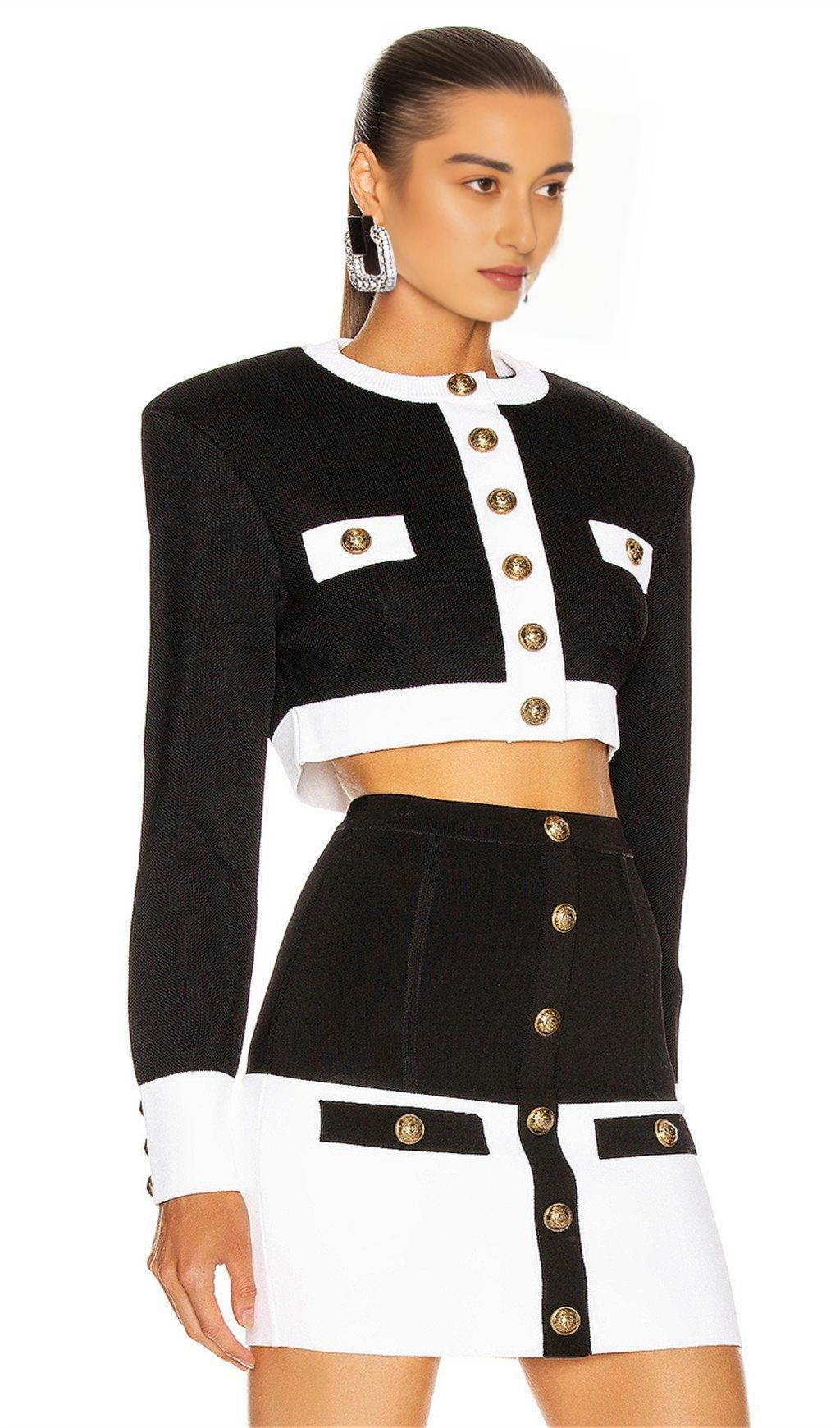 WHITE AND BLACK BANDAGE DRESS