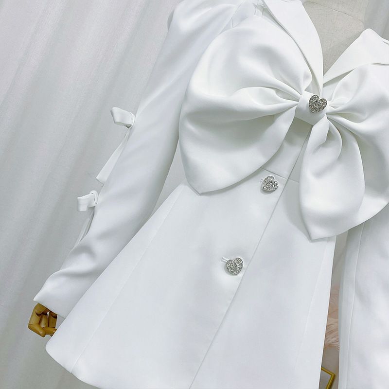 Be the belle of the ball in this stylish White Bow Waist Suit Dress! Its dainty diamond bow adds a touch of class, perfect for any formal occasion. An elegant addition to any wardrobe!