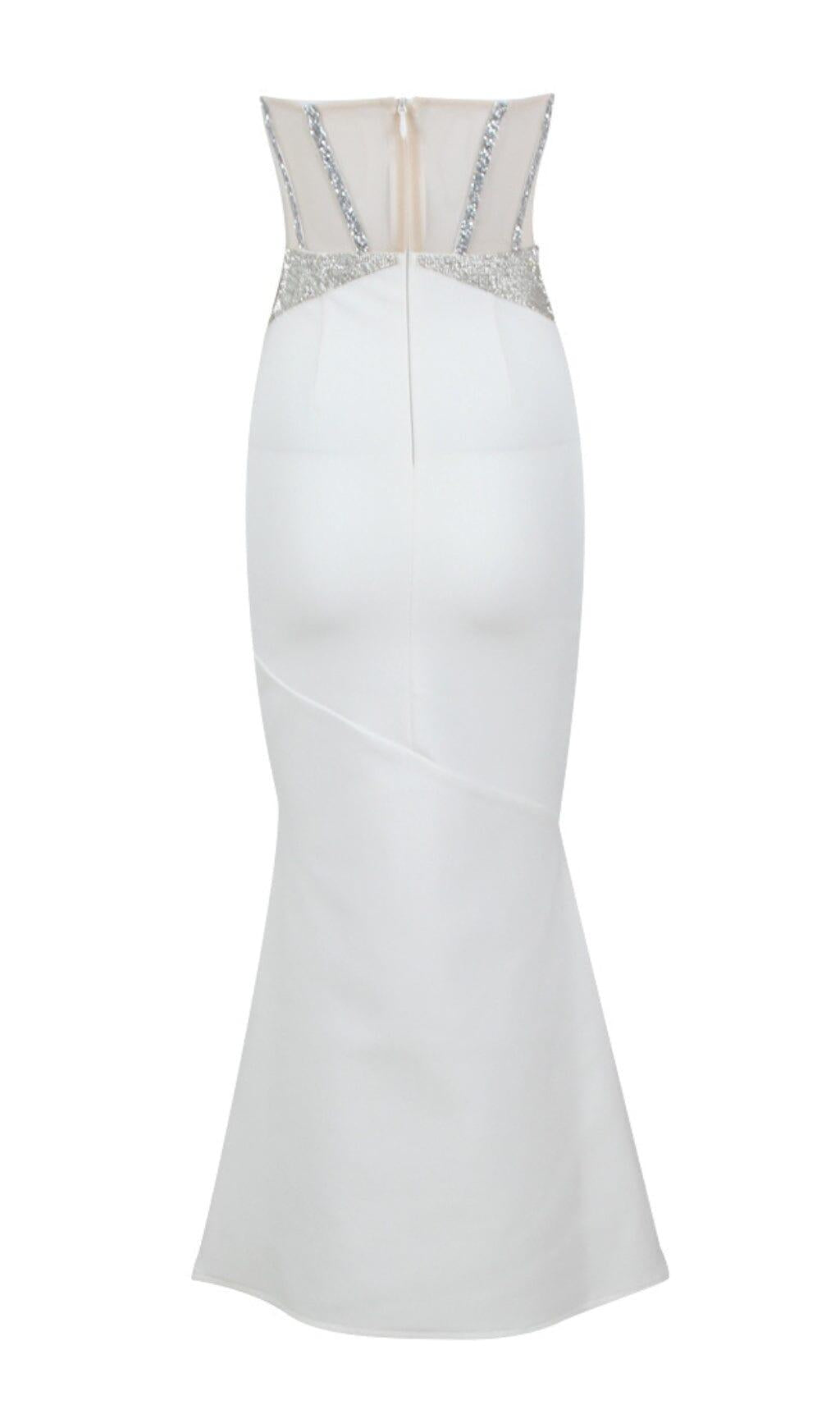 WHITE CRYSTAL CORSET SATIN GOWN