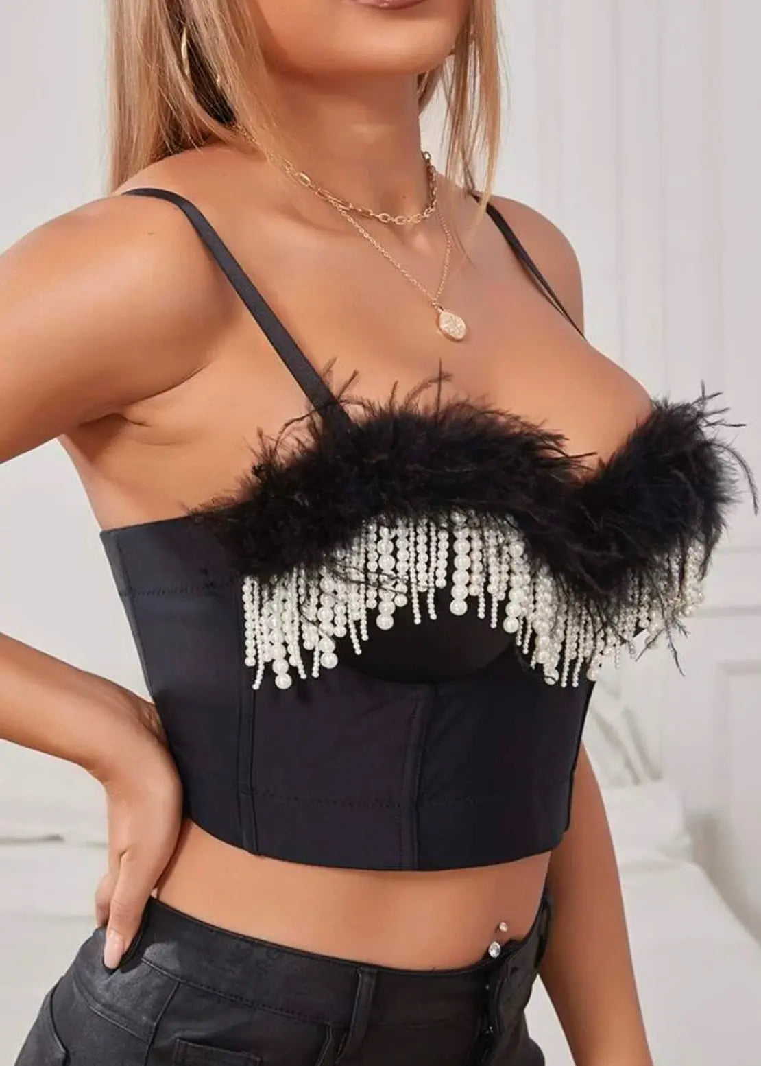 FEATHER PEARL CORSET TOP