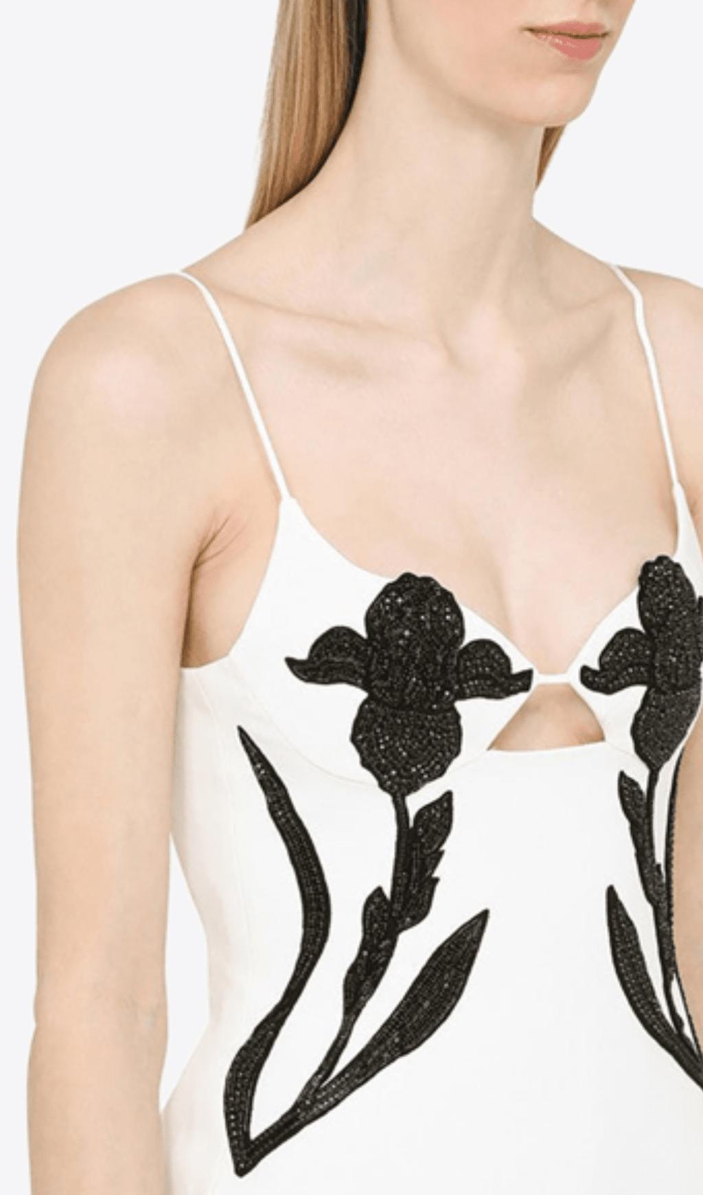 WHITE FLORAL-APPLIQUE MINI DRESS