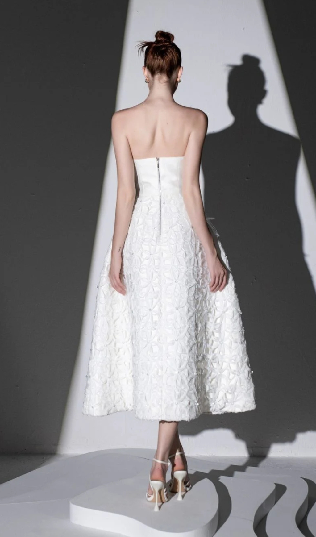 WHITE FLORAL EMBELLISHED STRAPLESS MIDI DRESS