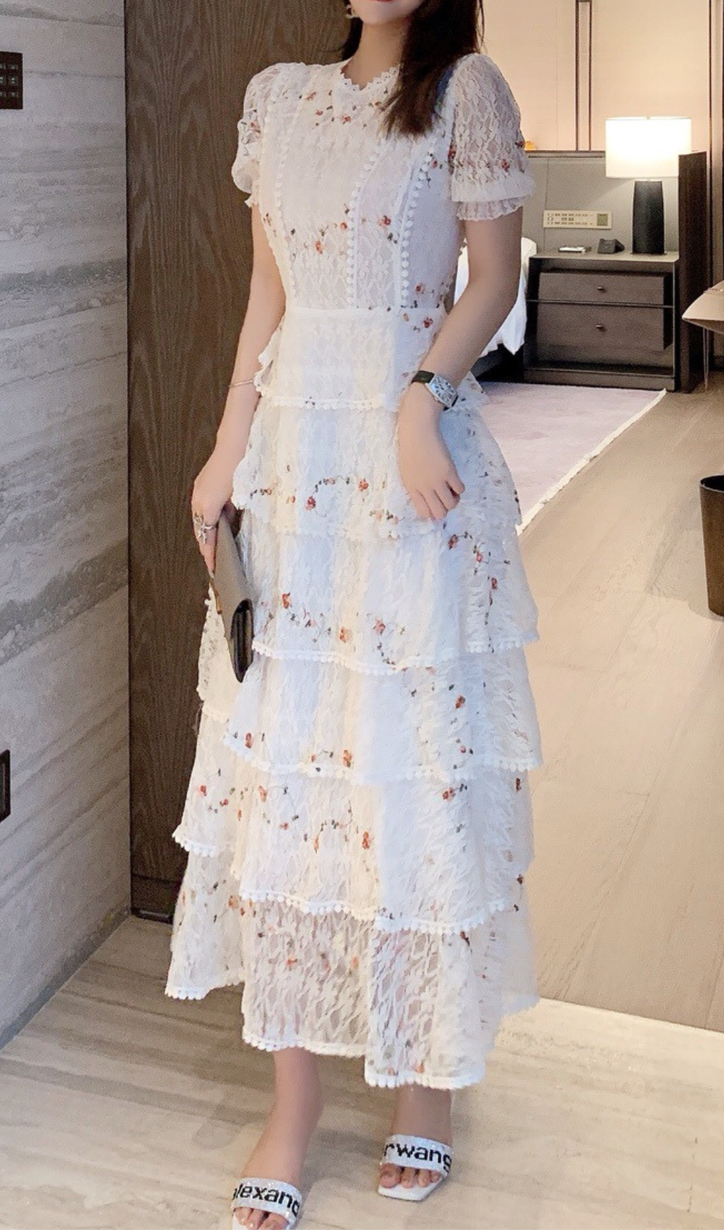 Made from delicate floral lace, this midi dress will make you feel feminine and elegant. Complete your look with the perfect pair of sandals and enjoy the warm weather in style. Get ready to turn heads and make a statement with this stunning dress.