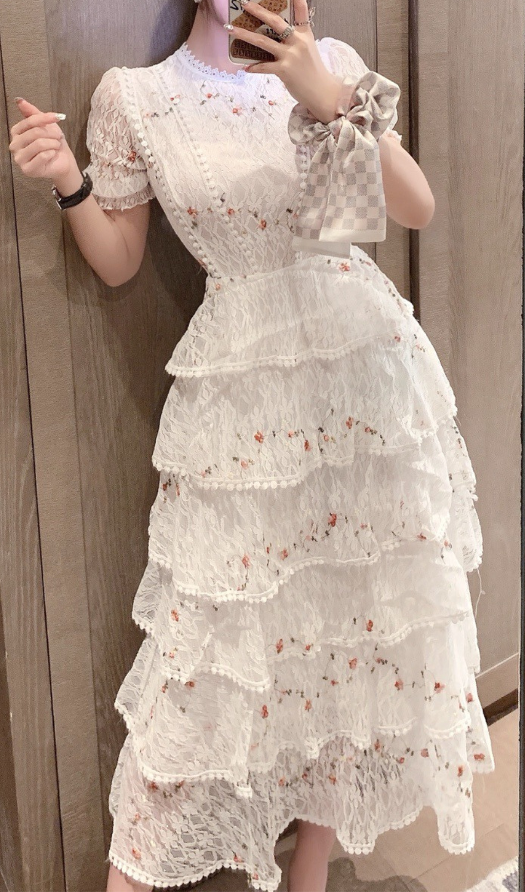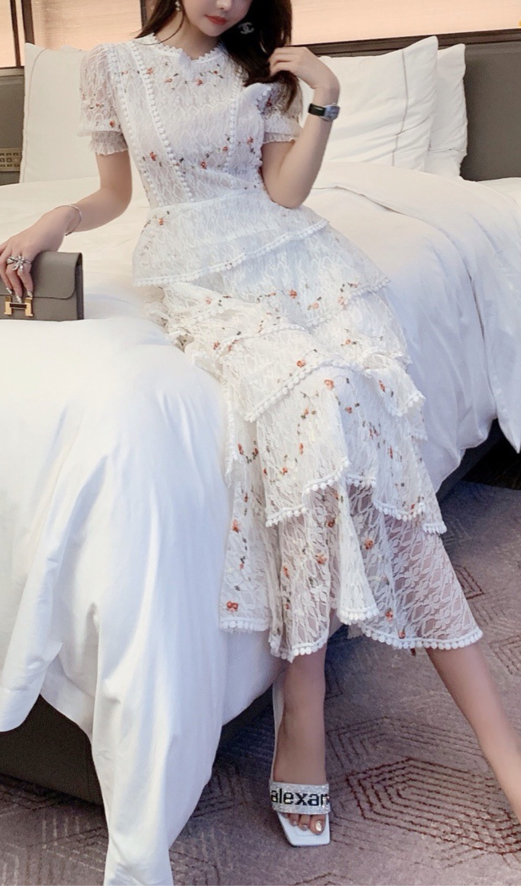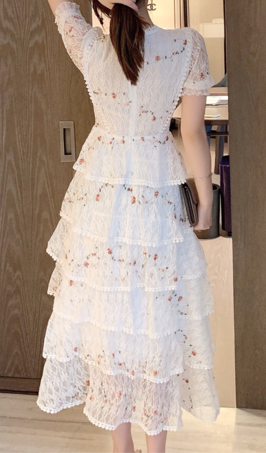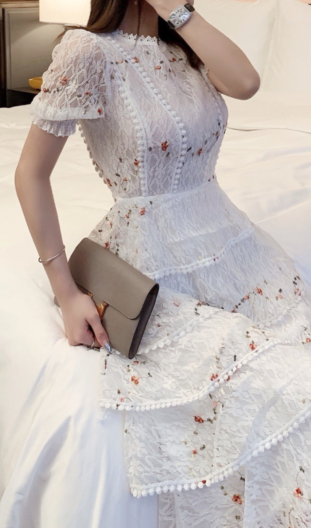 WHITE FLORAL LACE MIDI DRESS