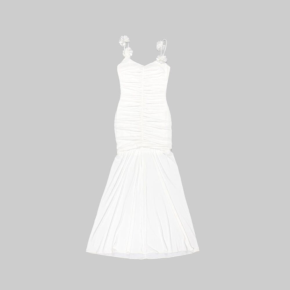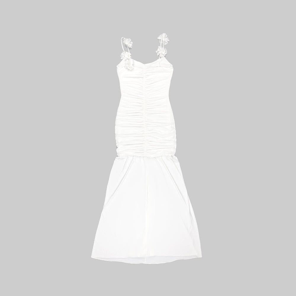 WHITE FLORAL SUSPENDER MAXI DRESS