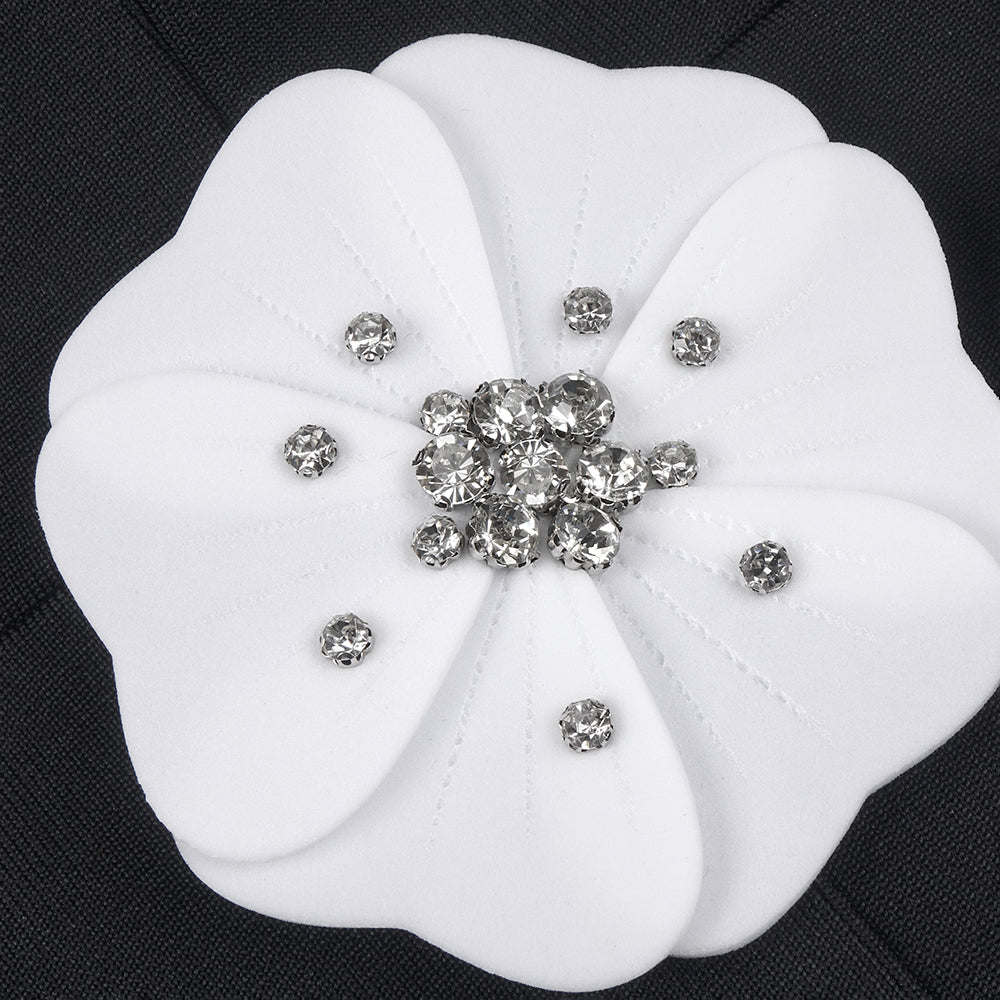 The delicate white flower embellishments add a feminine touch while the black color exudes elegance. Perfect for any occasion, this dress will make you feel confident and beautiful.