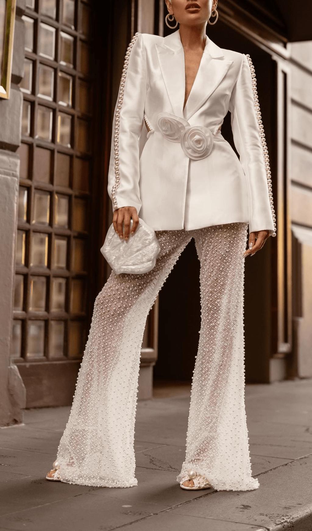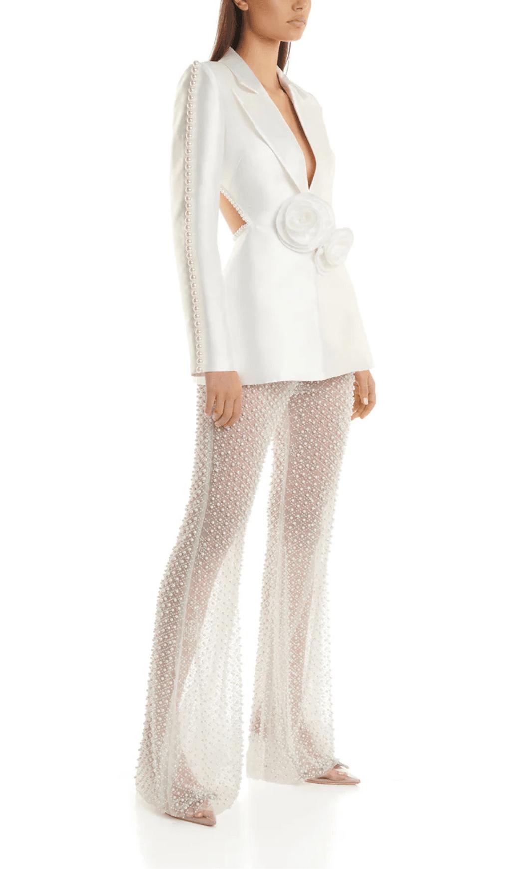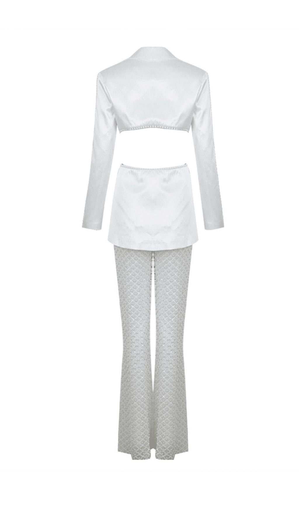 WHITE HOLLOW TIGHT TROUSERS TWO-PIECE SET