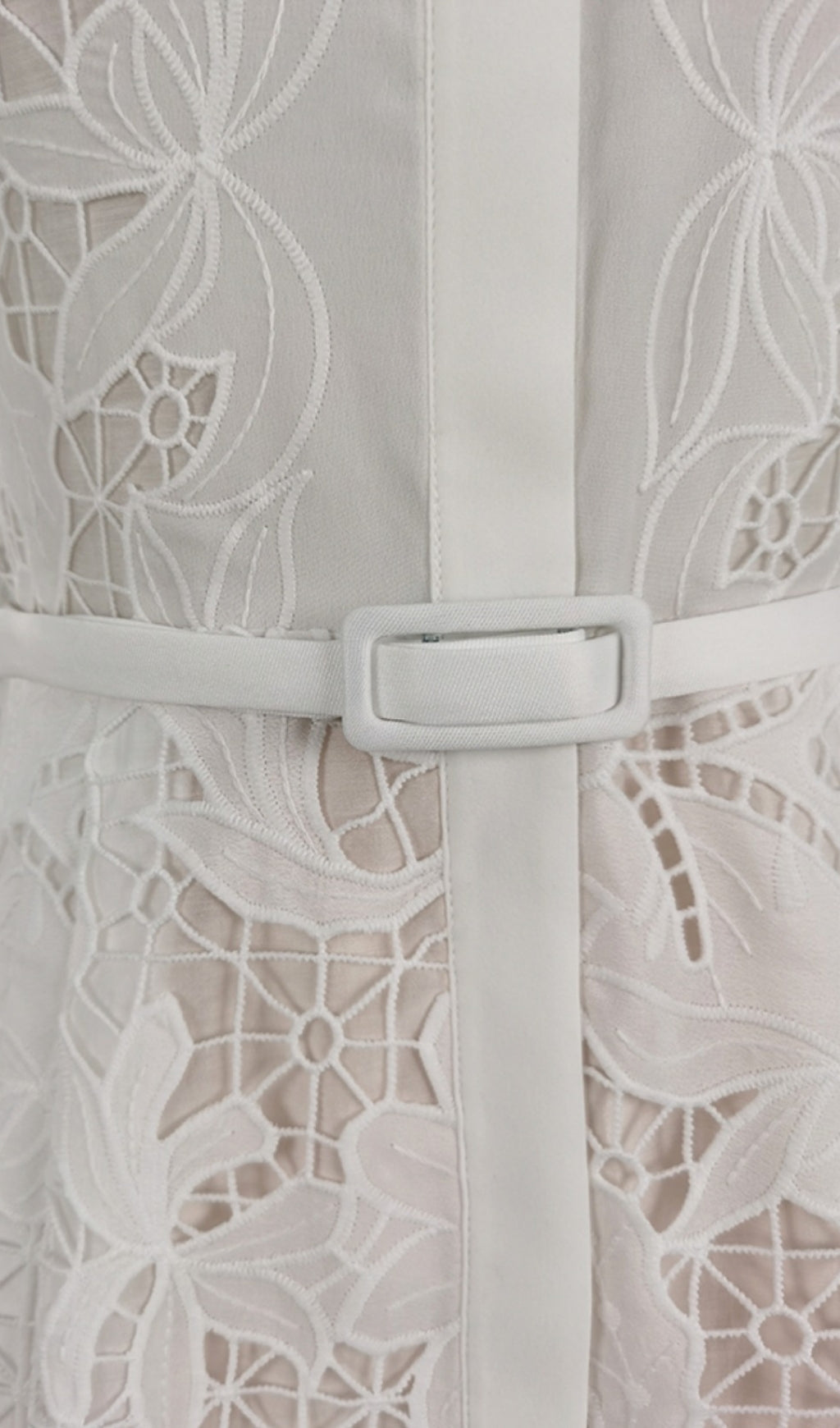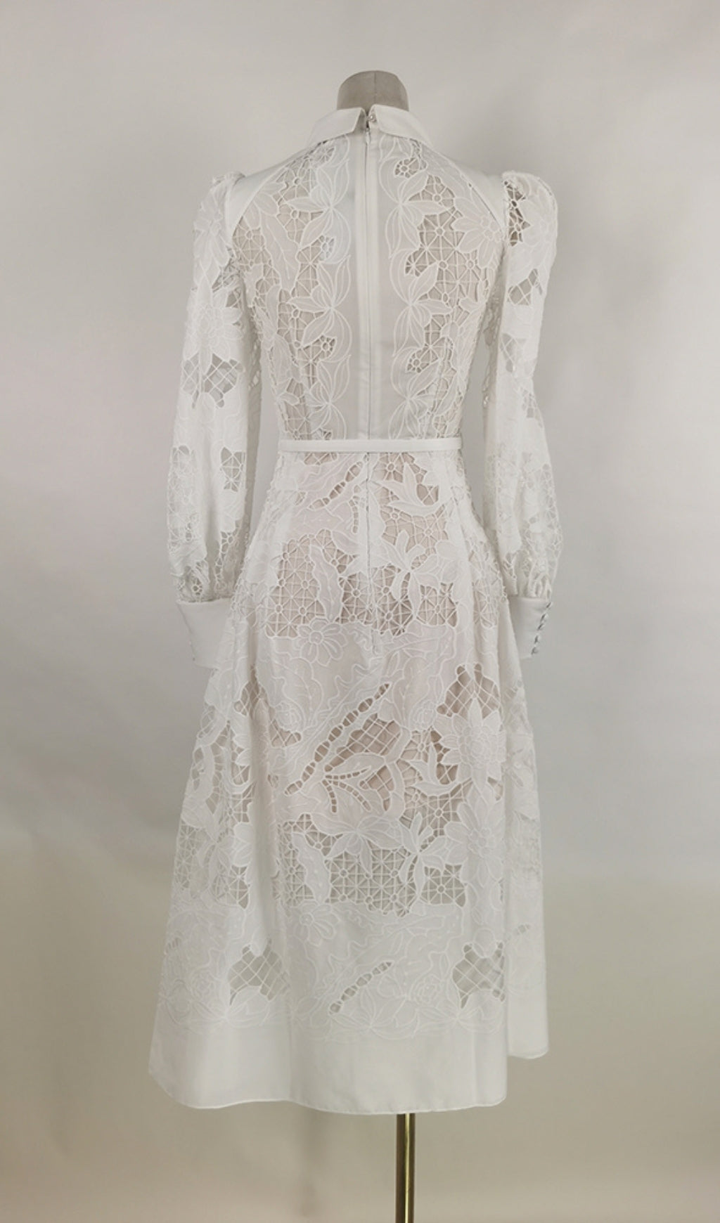 WHITE LACE EMBROIDERED FULL HEM MIDI DRESS