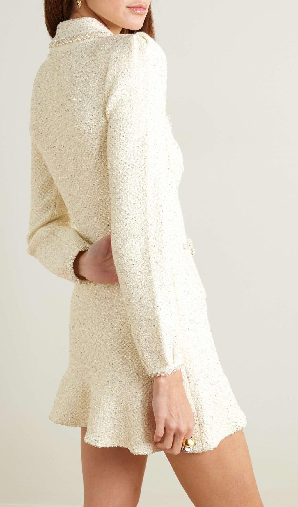 EMBELLISHED SEQUINED BOUCLÉ-KNIT MINI DRESS