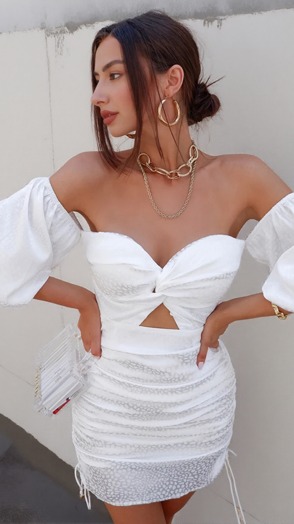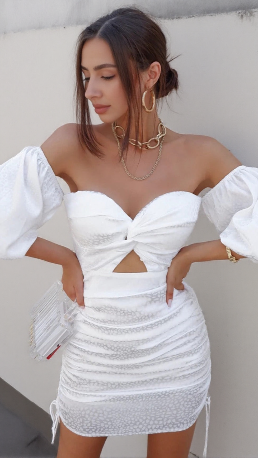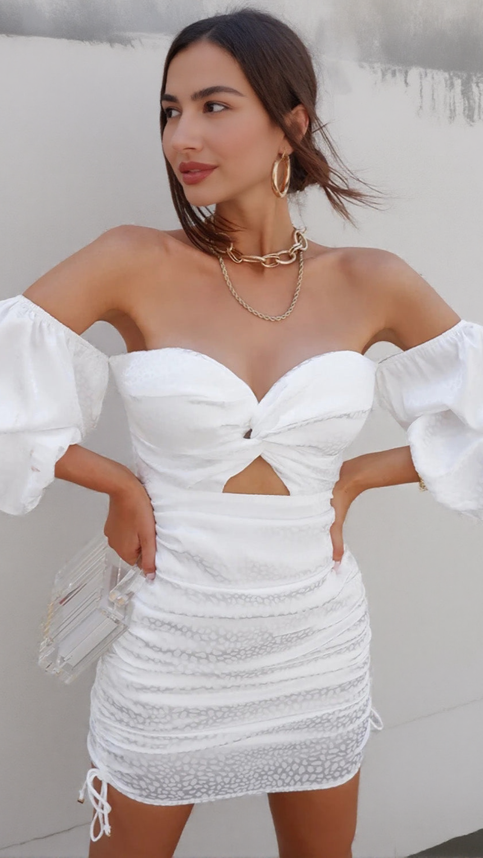 WHITE OFF-SHOULDER KEY HOLE DRESS