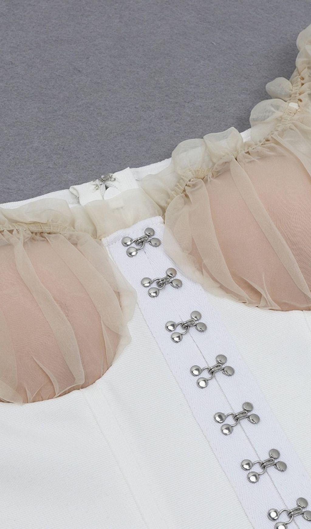 Elevate your style with our White Yarn Sleeve Mini Dress. Order now and experience the perfect blend of fashion and comfort.