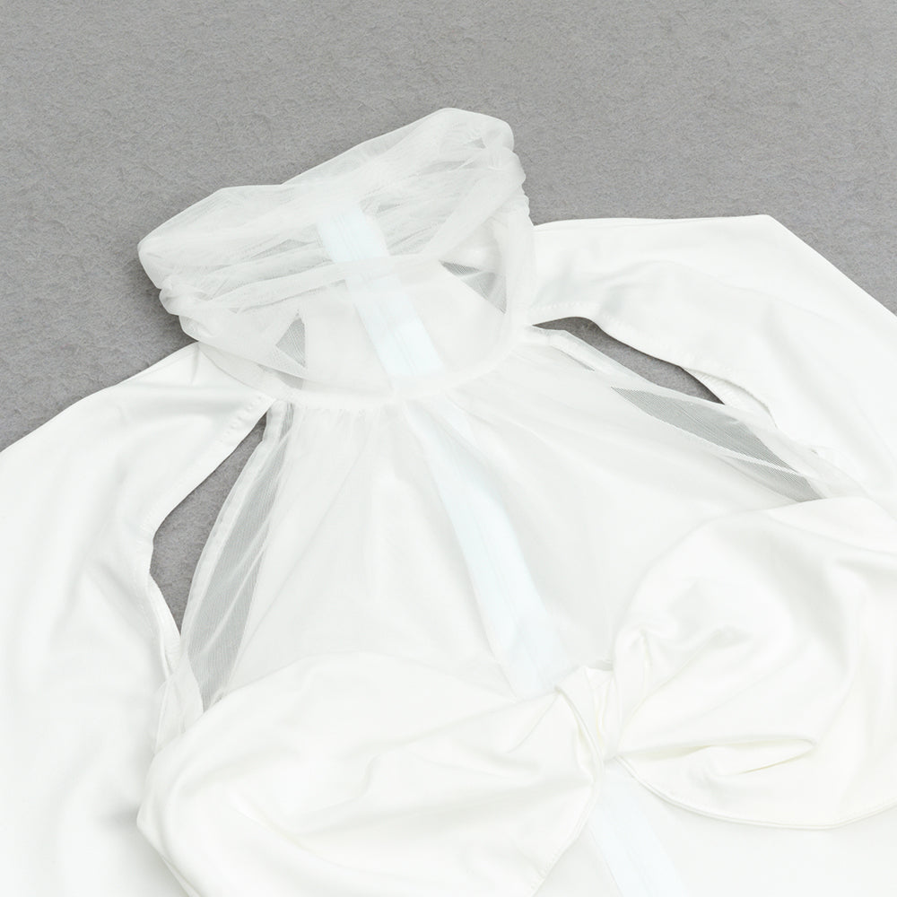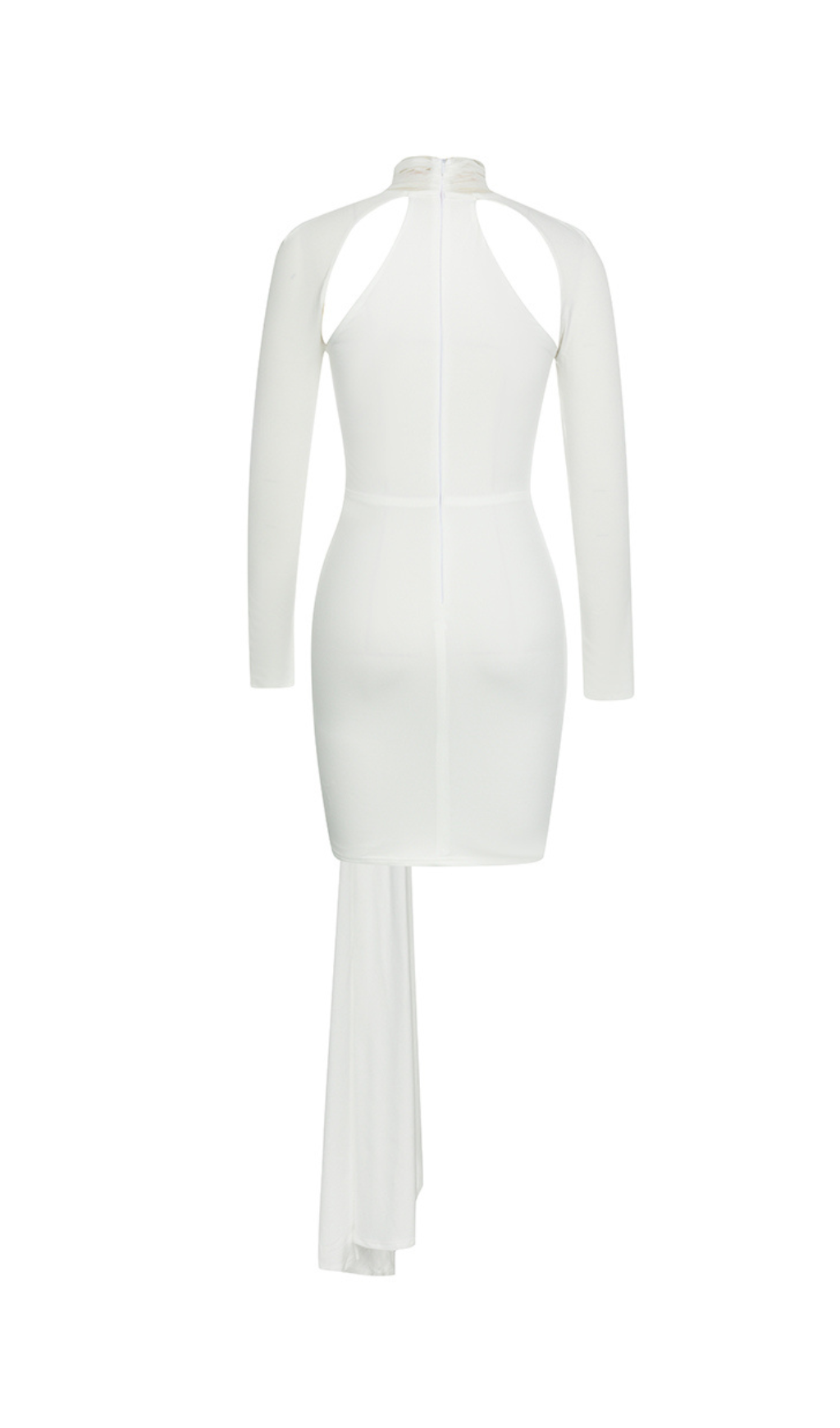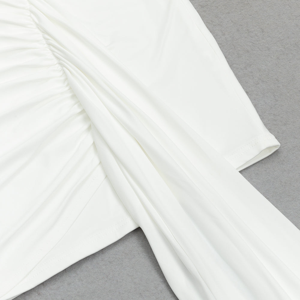 WHITE ONE-SLEEVE WAISTED TWIST DRESS