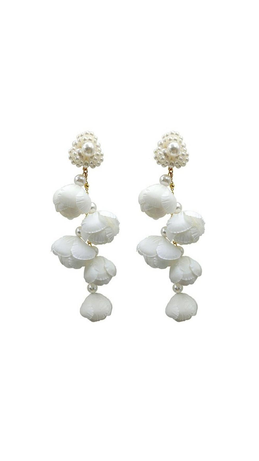 ALEJANDRA WHITE PEARL & PETAL DANGLE EARRINGS - ELEGANT FLORAL STATEMENT FOR WOMEN