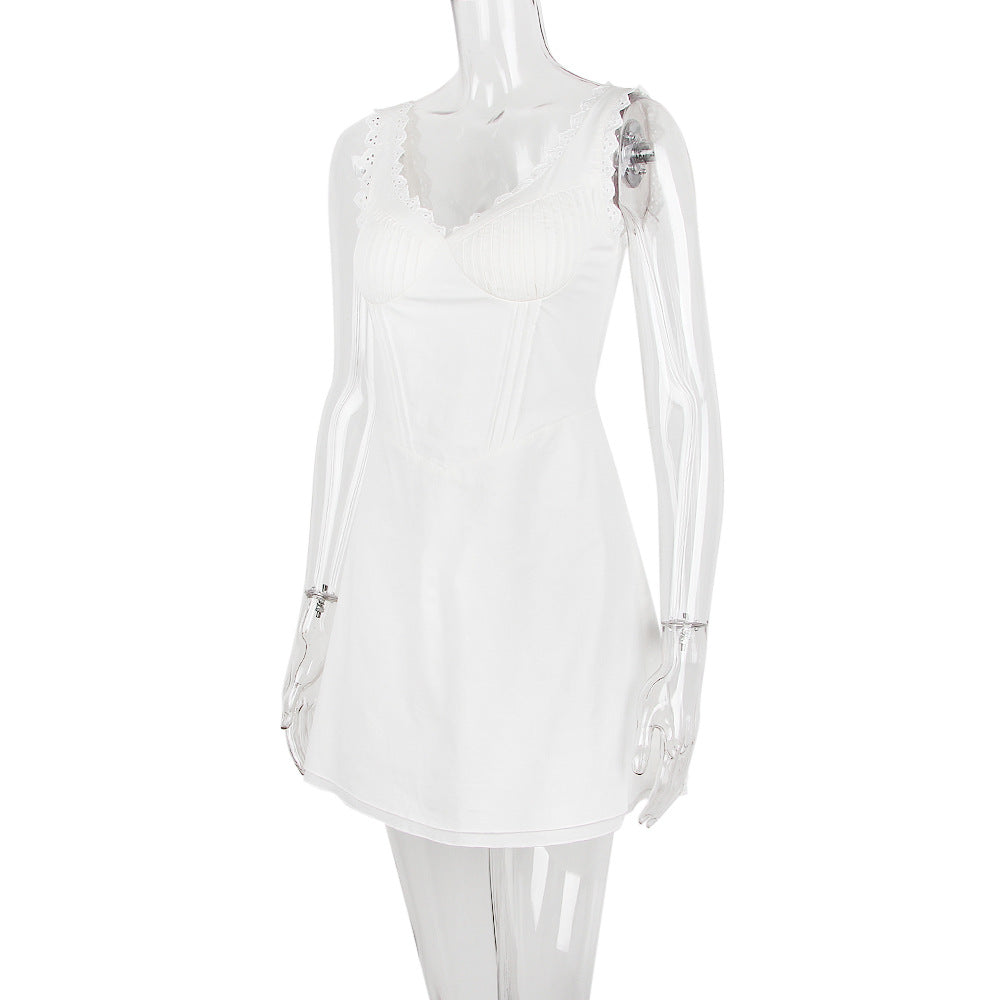 WHITE PIN TUCK MINI DRESS