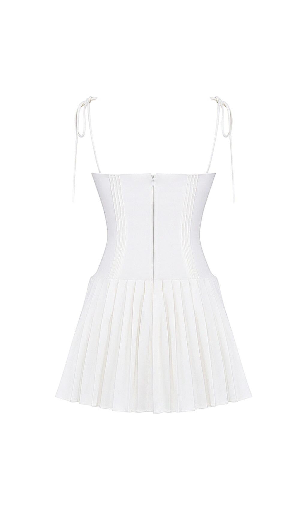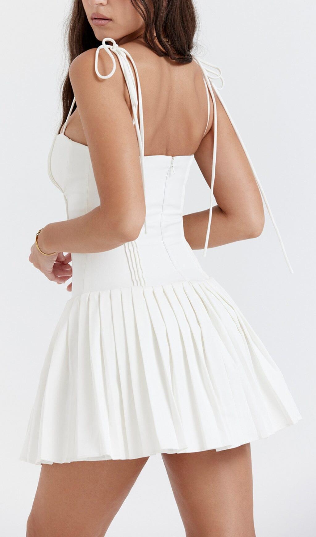 WHITE PLEATED MINI DRESS