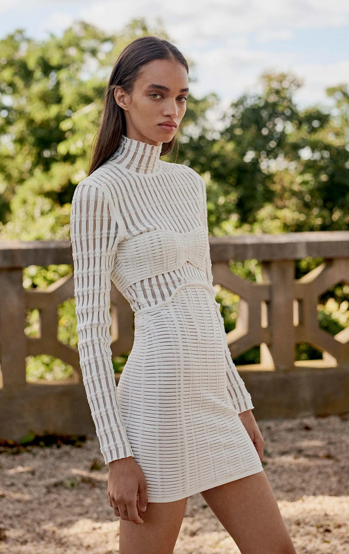 WHITE SHADOW STRIPE MINI DRESS