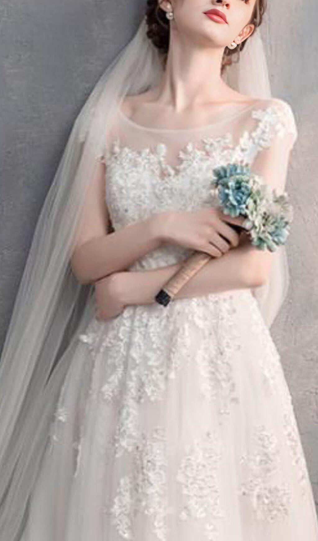 • Unique Design: The elegant mesh hood adds a touch of uniqueness, setting this dress apart from traditional wedding gowns.