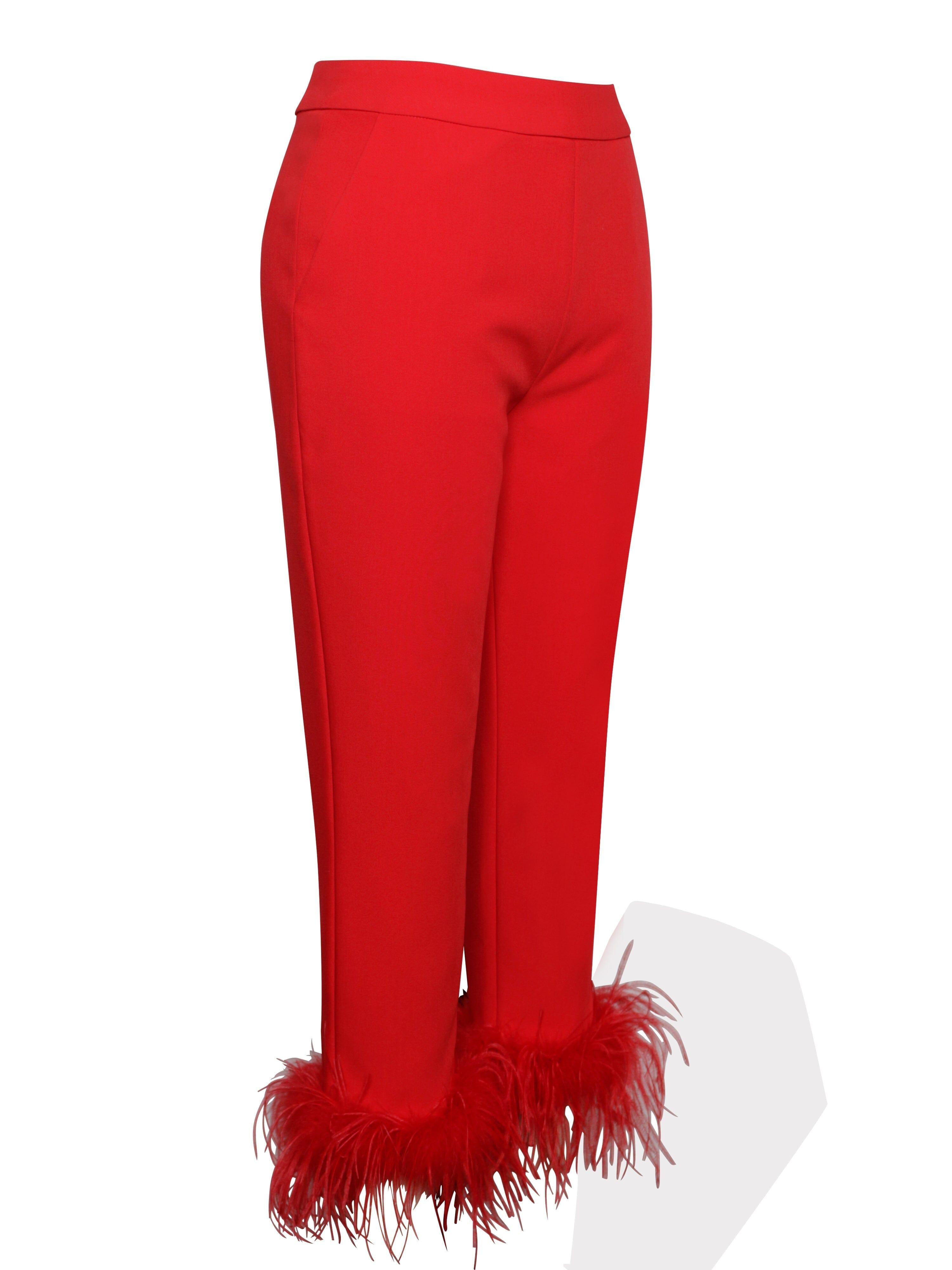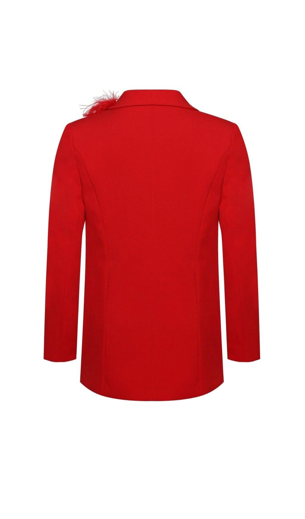 RED BLAZER SUIT WITH FEATHER TRIM
