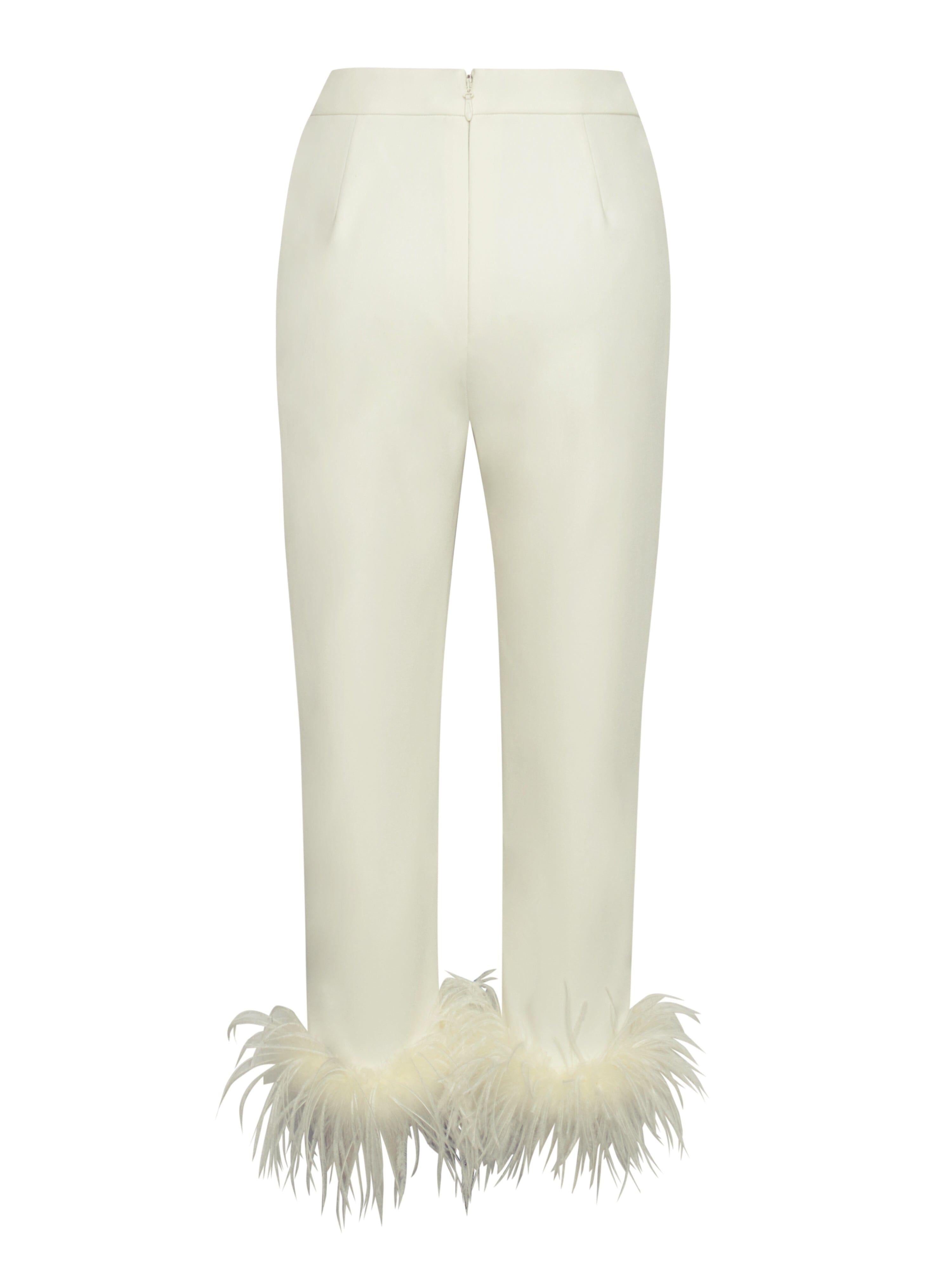 CREAM WHITE BLAZER SUIT WITH FEATHER TRIM