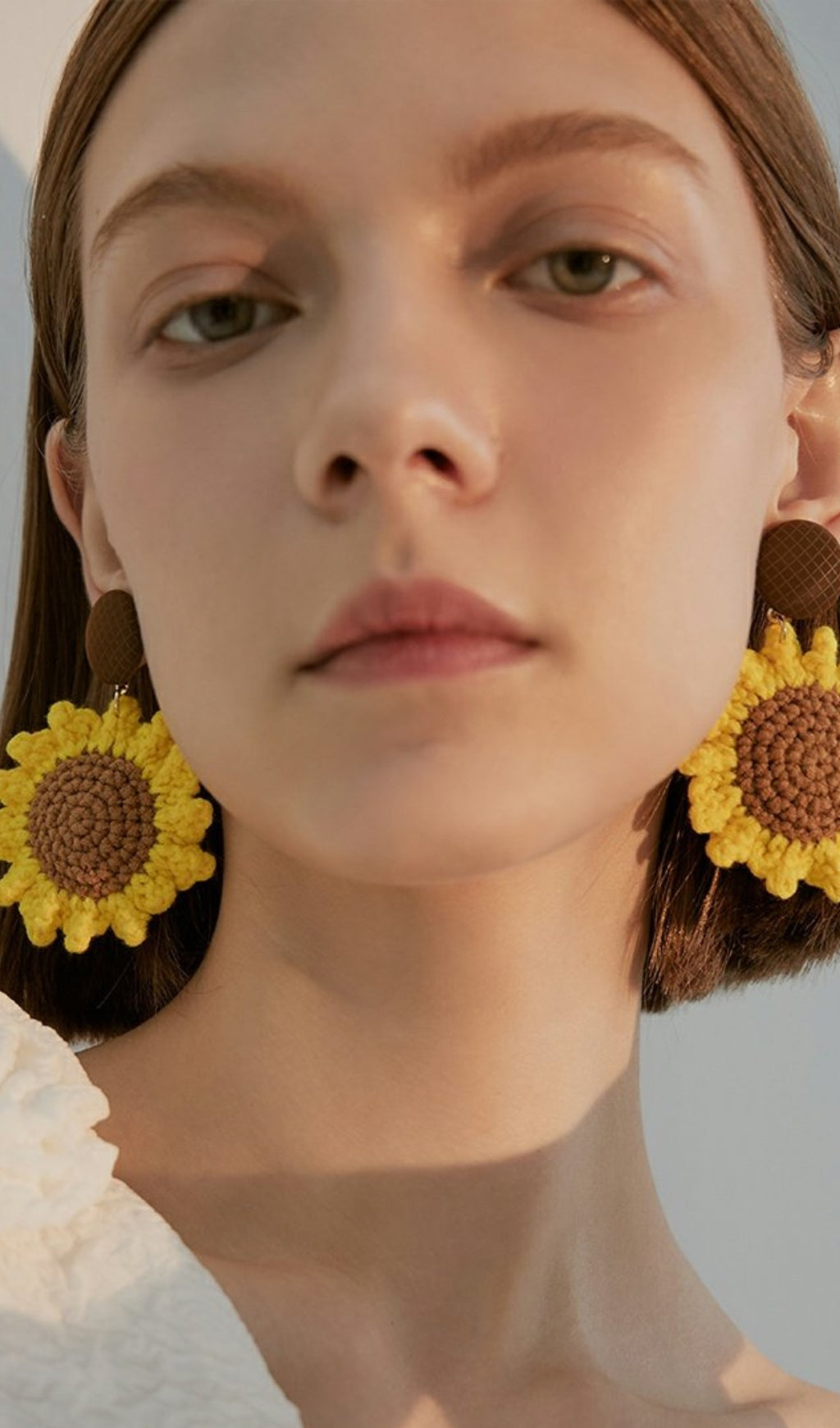 AMBRA YELLOW BRAIDED FLOWER WOOL EARRINGS