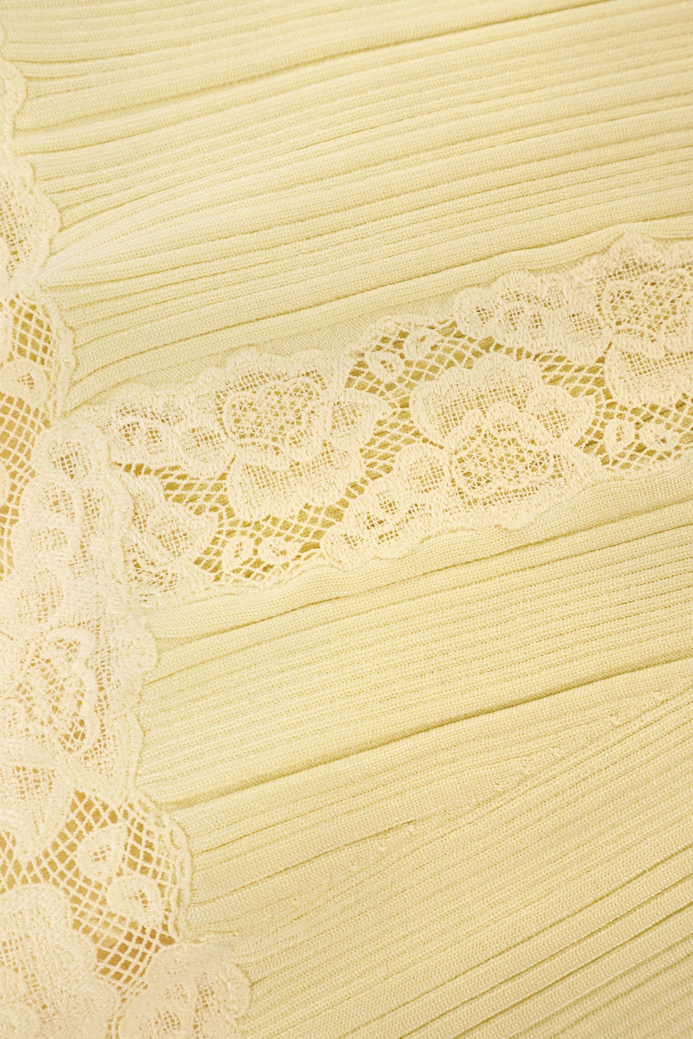 Cut from yellow ribbed knit for a dose of sunshine, lace trims give this midi dress added glamour. A cut-out brings intrigue to the sensual wrap top �C pair with heels for your next garden party.