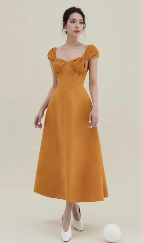 YELLOW KNOTTED A-LINE MIDI DRESS
