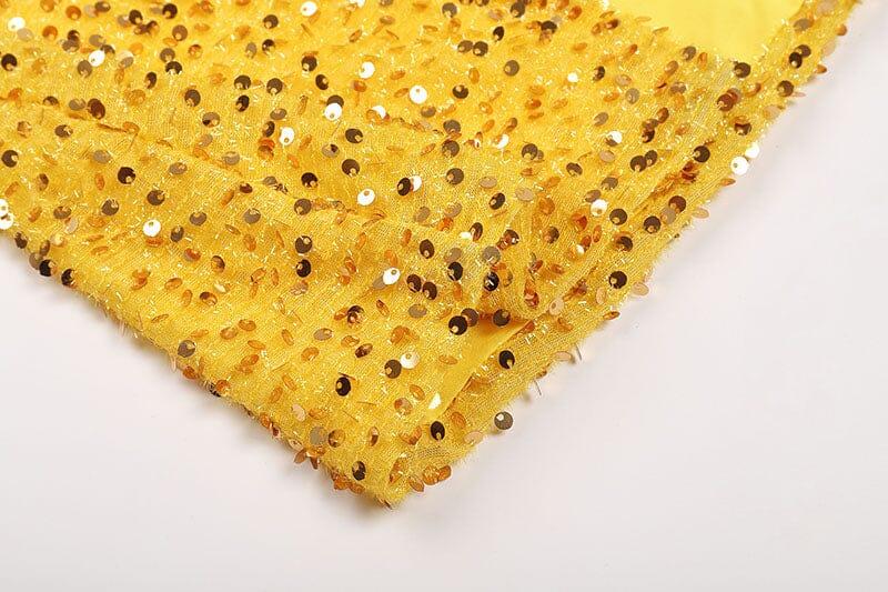 Look stunning in this yellow one-shoulder maxi dress! Adorned with glimmering sequins, this show-stopping look features an eye-catching side slit and is sure to turn heads at your next event! Make it your own and sparkle the night away!