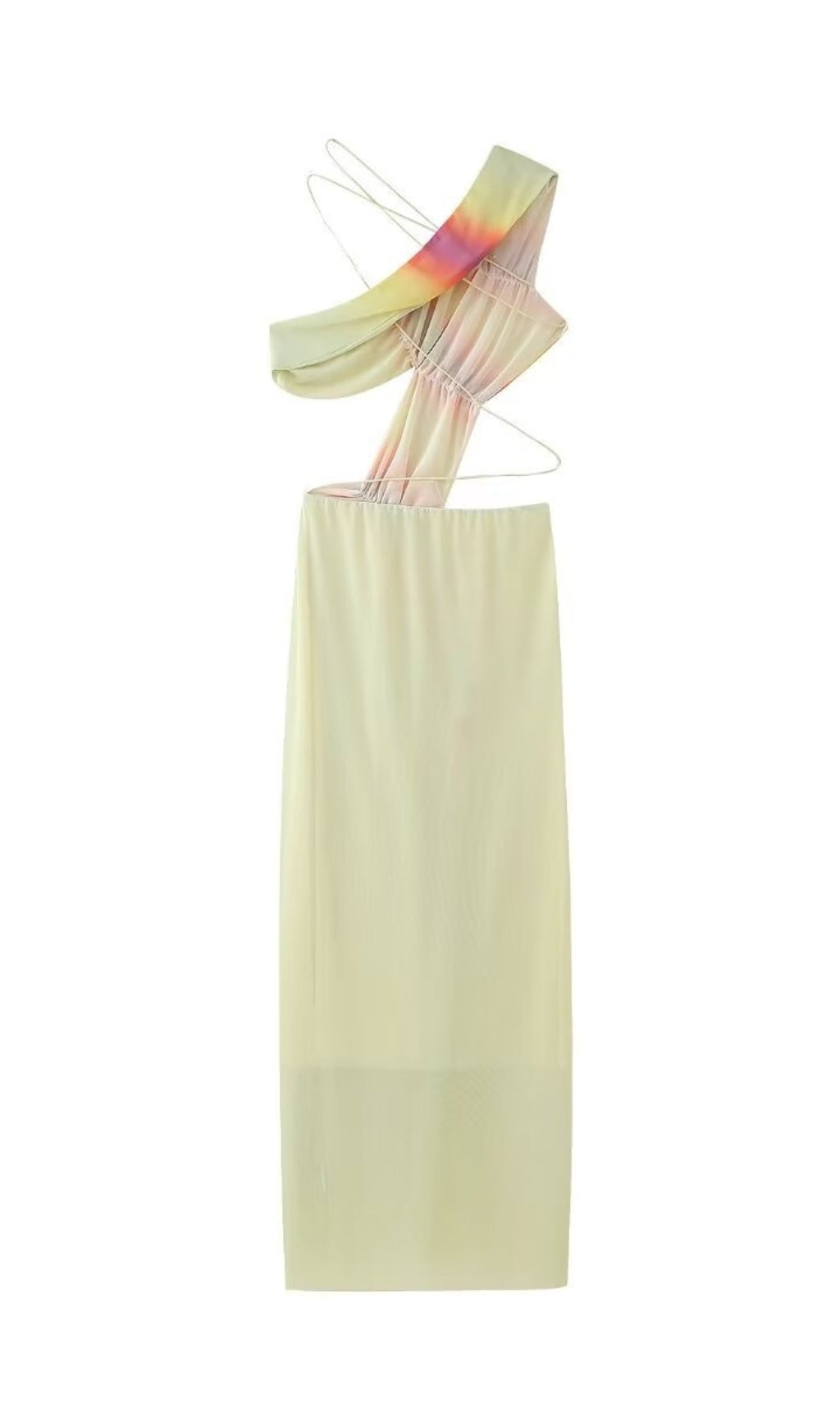 Details    ruching, cutouts, and printed gradient pattern throughout