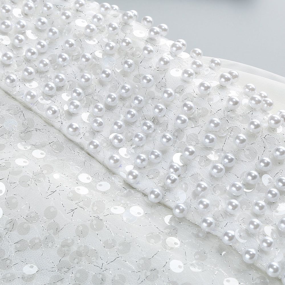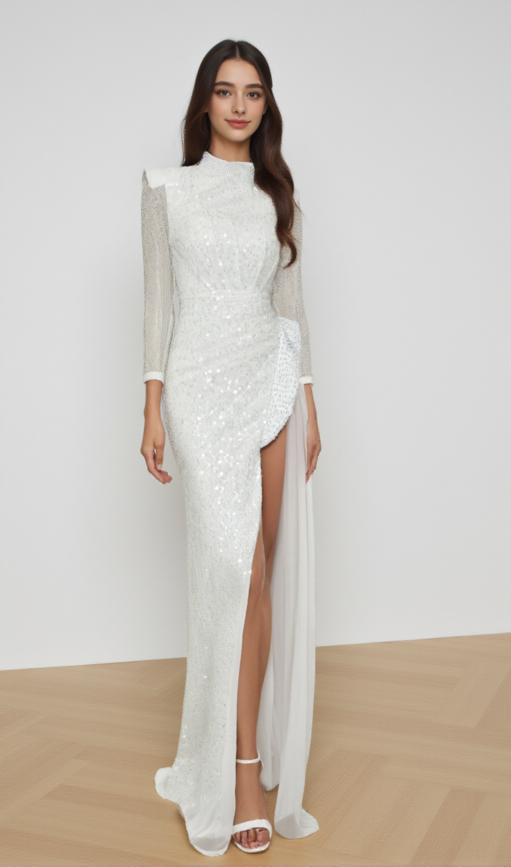 YVETTE PEARL EMBELLISHED SEQUIN MAXI DRESS IN WHITE