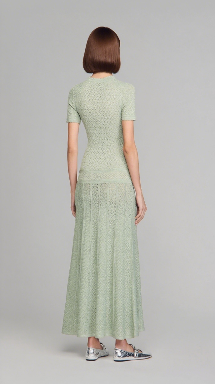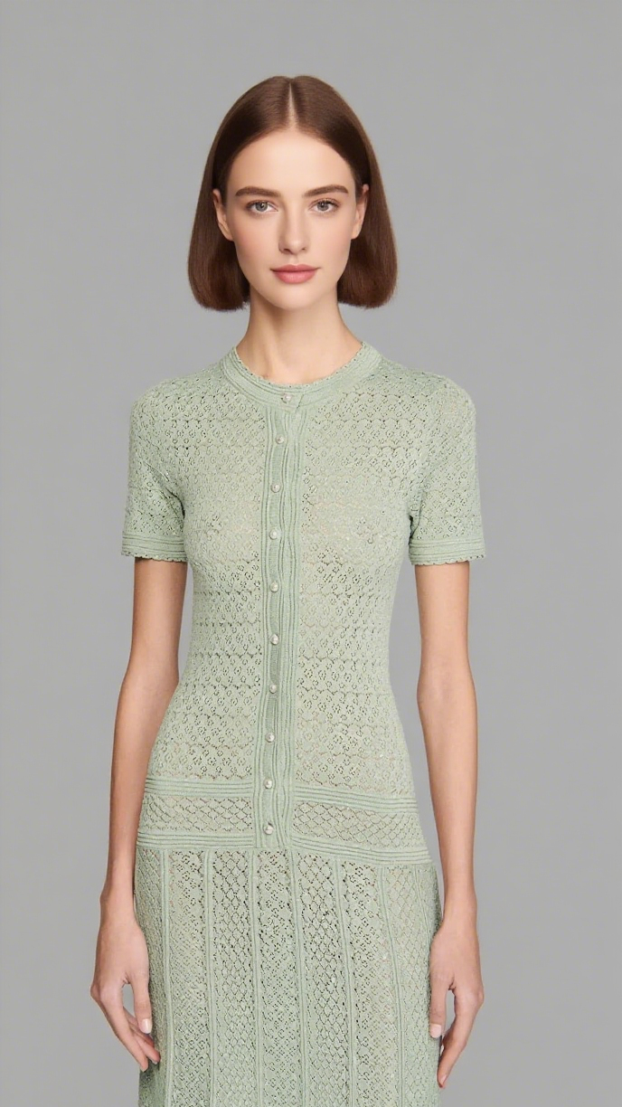 The Yvonne Hollow Knit Maxi Dress in Almond Green offers a sophisticated blend of comfort and style. Crafted with a delicate knit pattern, this maxi dress features subtle hollow details that enhance breathability and visual interest. Its almond green hue provides a versatile, earthy tone perfect for both casual and refined occasions. Designed to drape elegantly, it flatters various body types while ensuring ease of movement. Ideal for layering or wearing alone, this dress is a refined choice for those seeking understated elegance with expert craftsmanship.