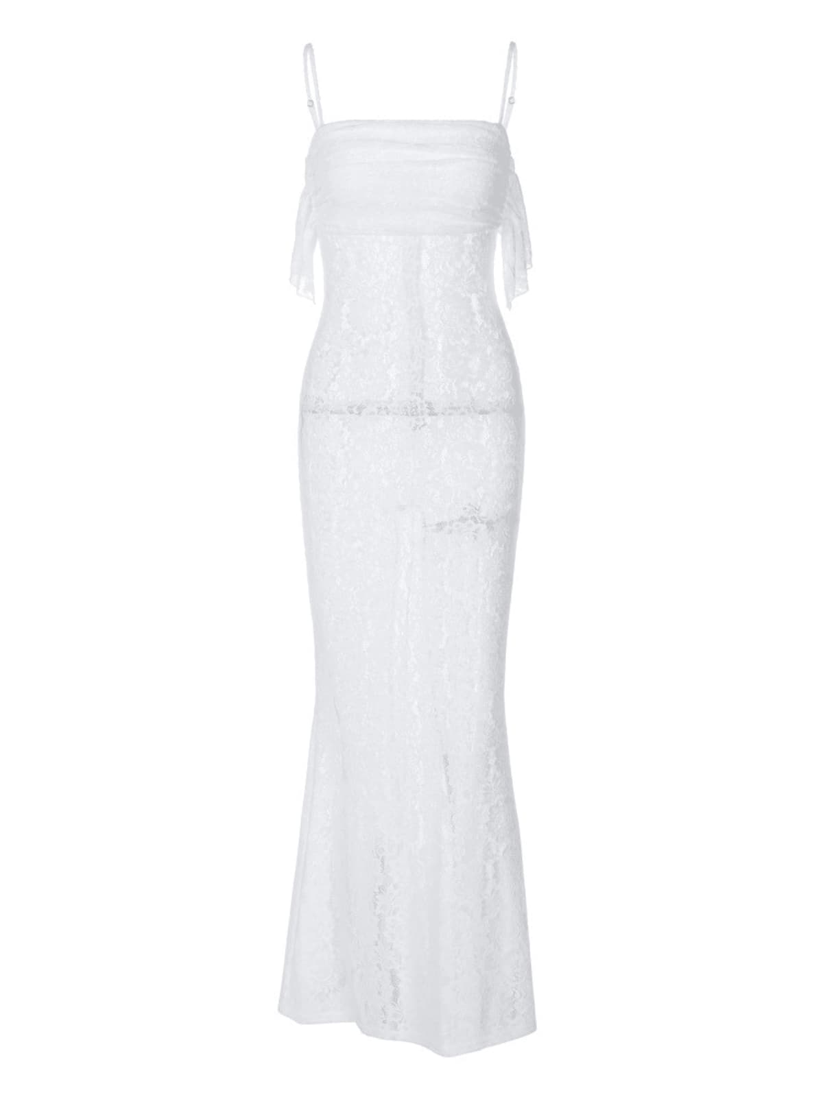Zakai Spaghetti Ruched Lace Maxi Dress