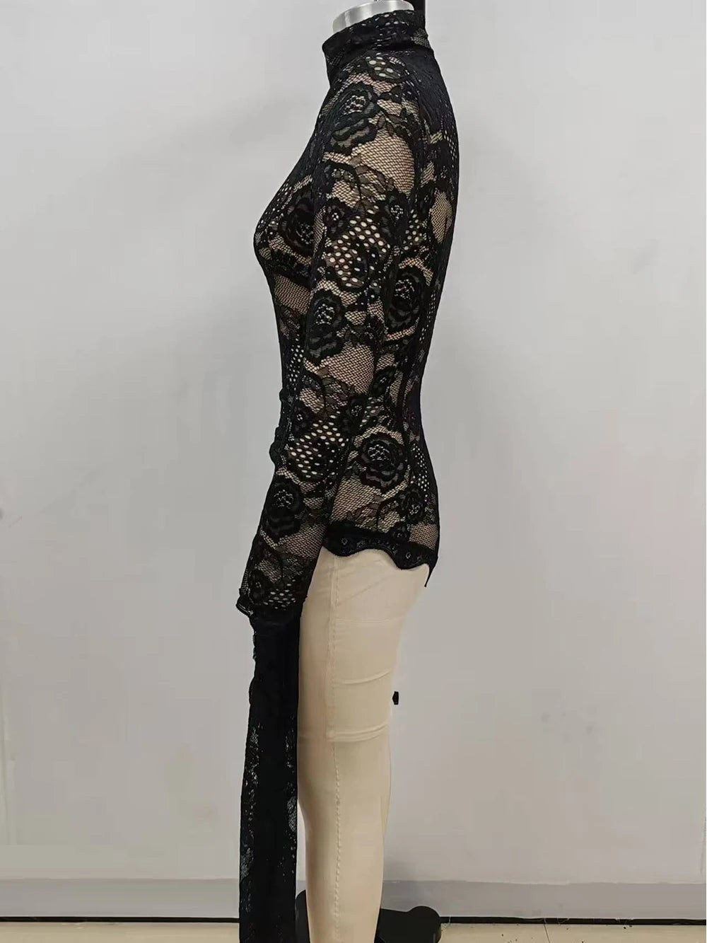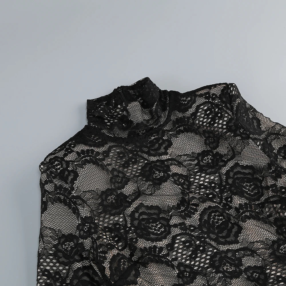 a stunning addition to your wardrobe. Made with delicate embroidered lace and a high neck design, this bodysuit is perfect for both casual and formal occasions. It offers a comfortable fit and a touch of elegance, making you feel confident and stylish.