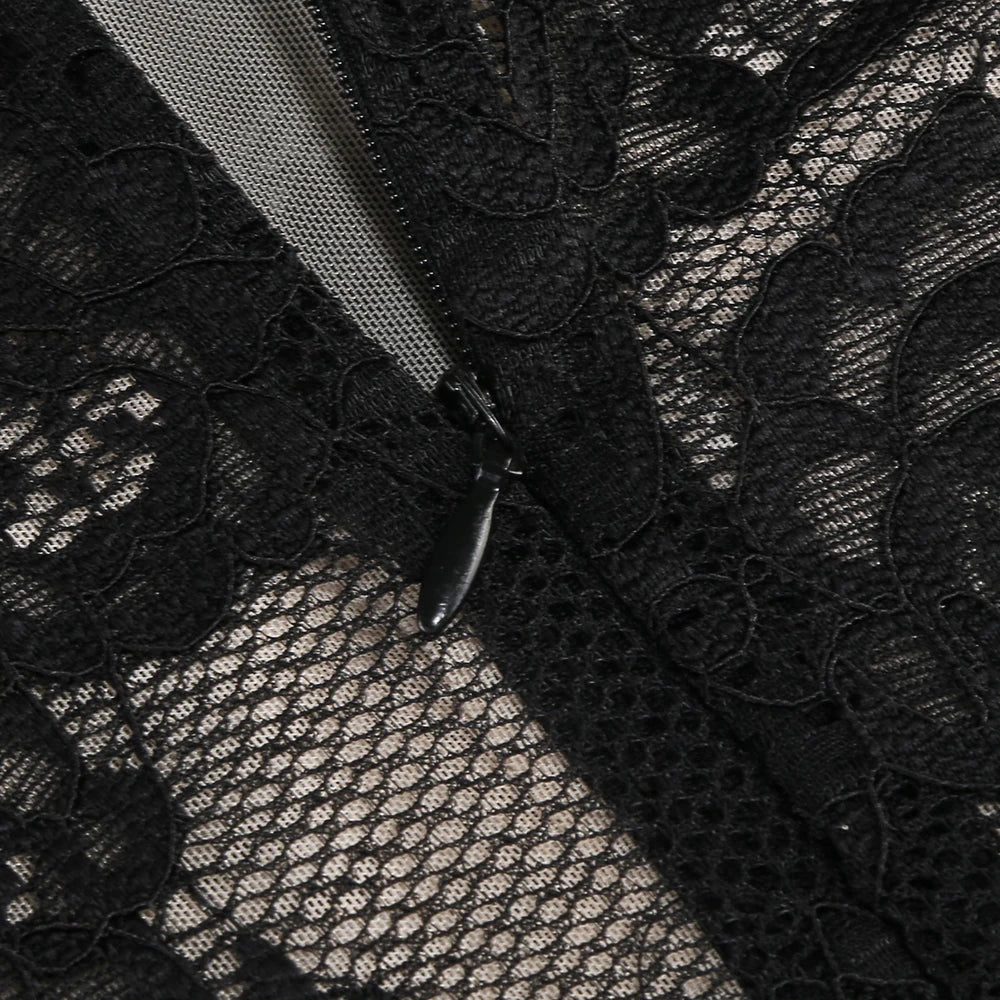 ZANNA BLACK HIGH NECK EMBROIDERED LACE BODYSUIT