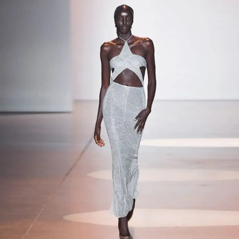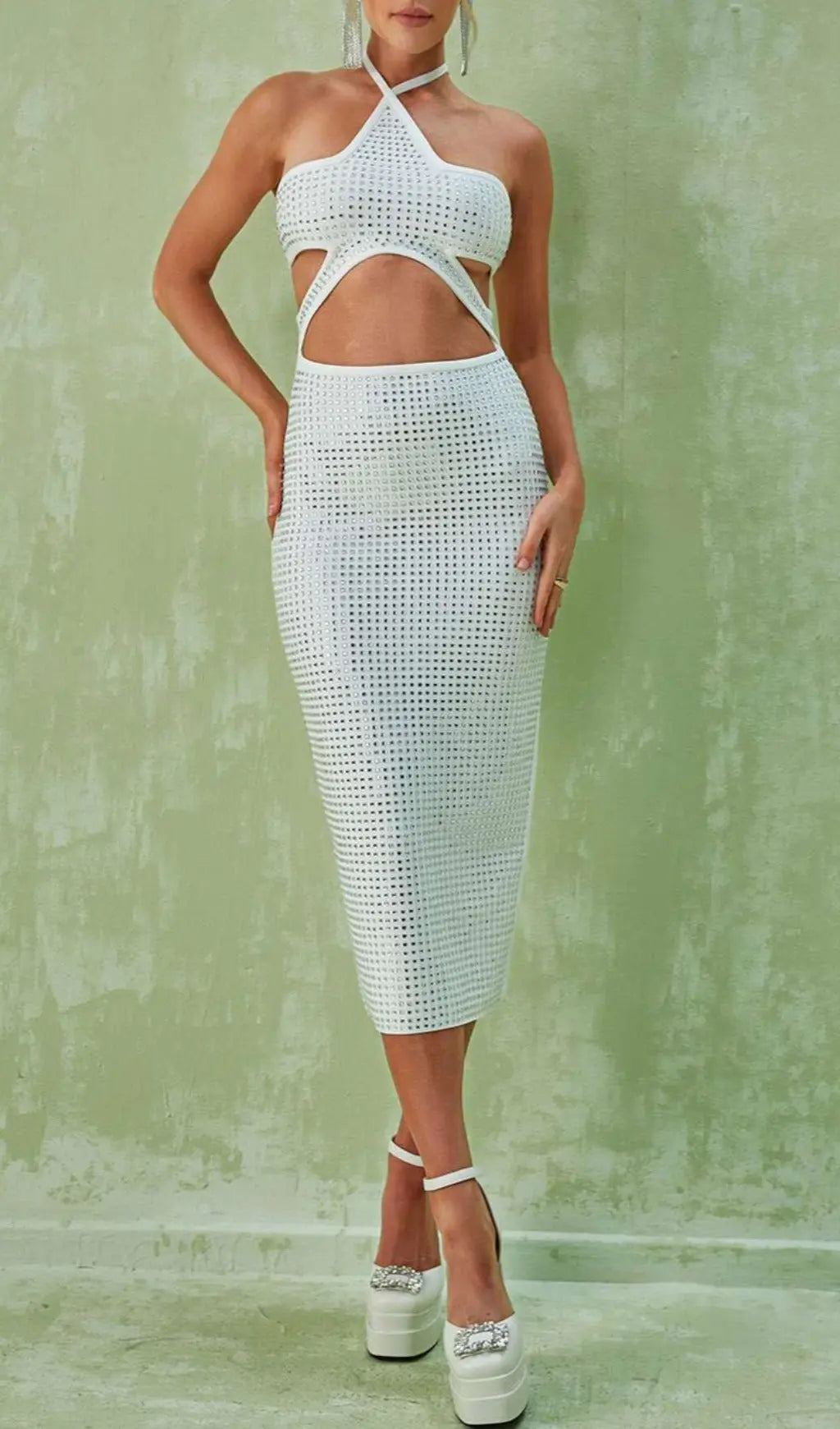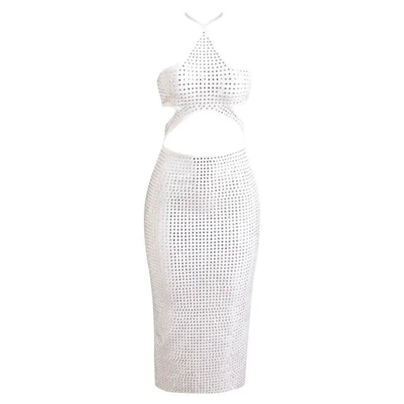 Look stunning in this Halterneck Rhinestone Midi Dress. Crafted in a bandage construction with cutout detailing and rhinestones, this midi length dress is perfect to wear in any occasion. Show off your beauty in this gorgeous dress.