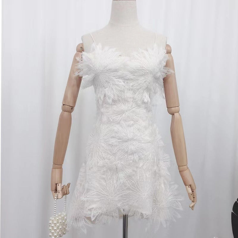 AINTZA WHITE FLORAL APPLIQUÉ MESH DRESS