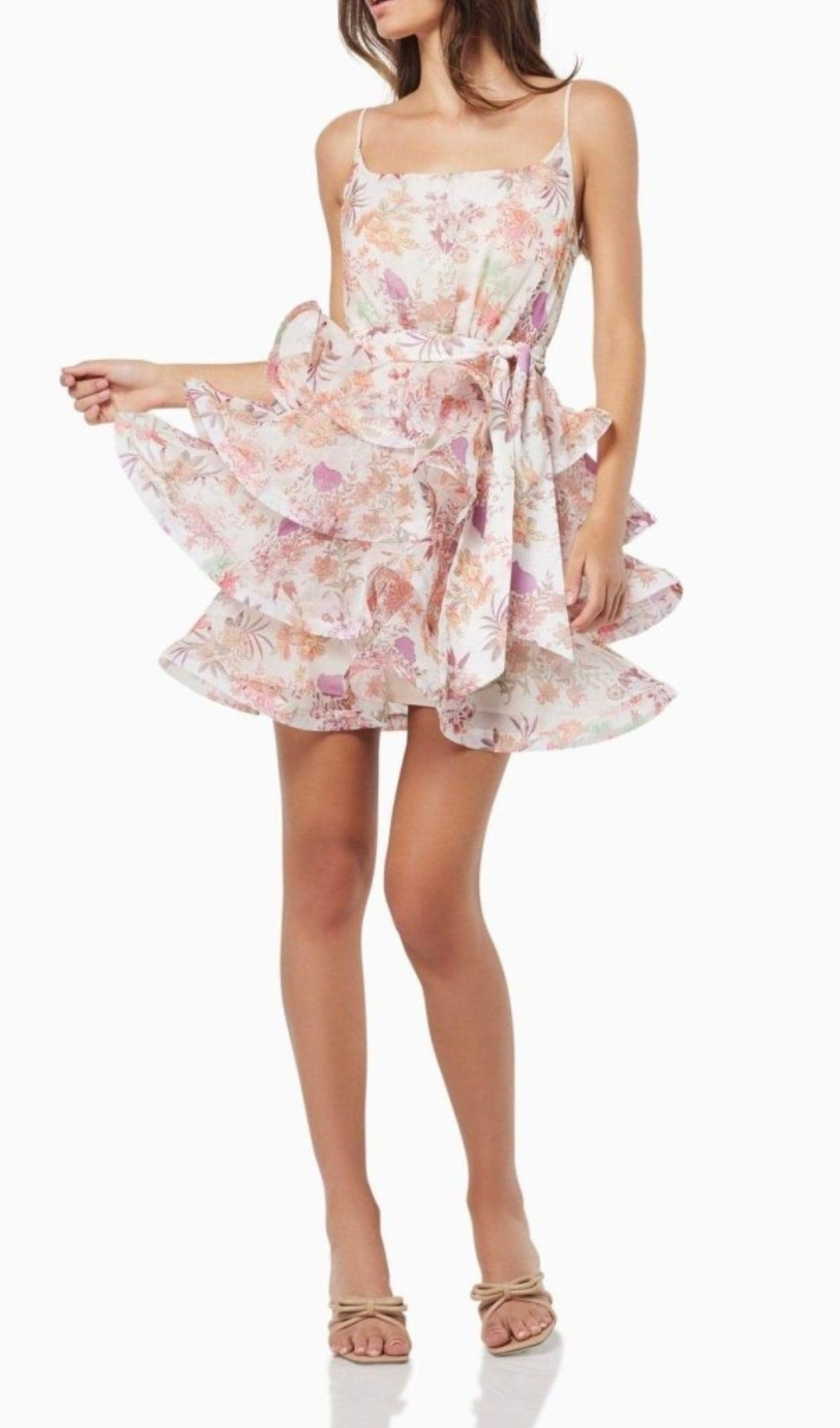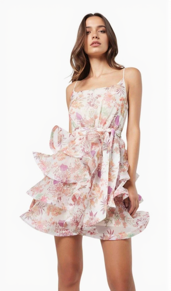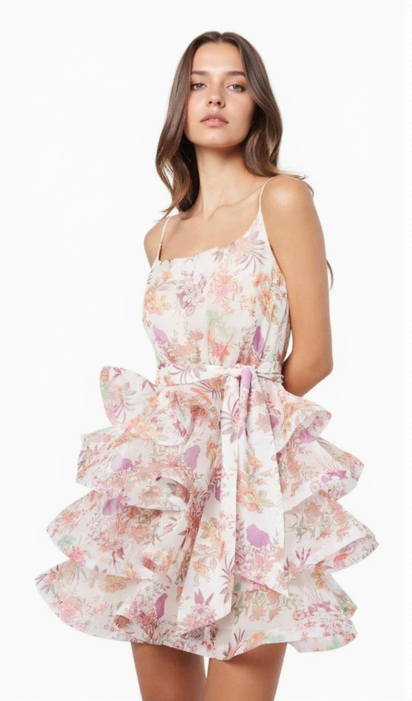 AMANDA MULTICOLOR FLORAL PRINTED RUFFLE MINI DRESS