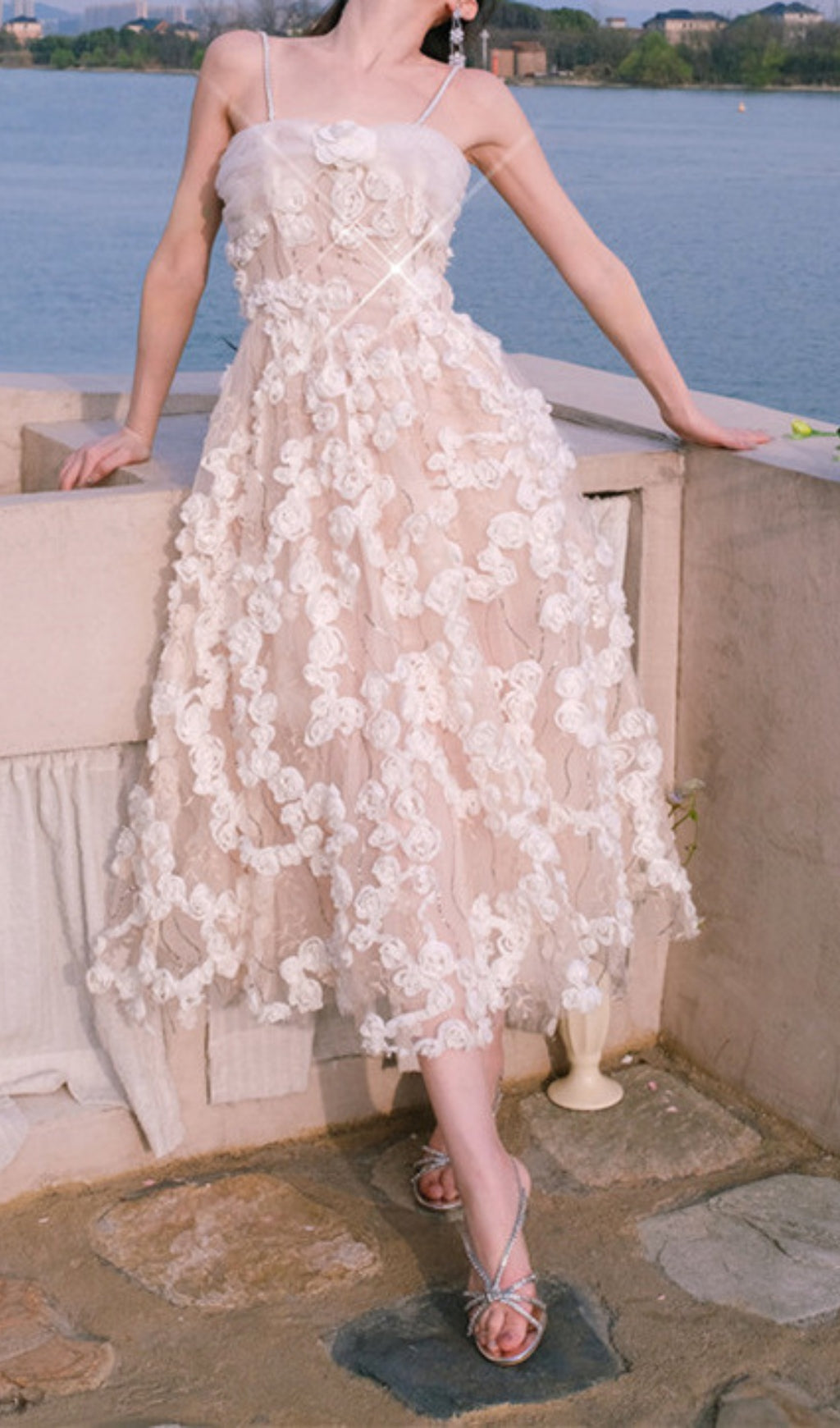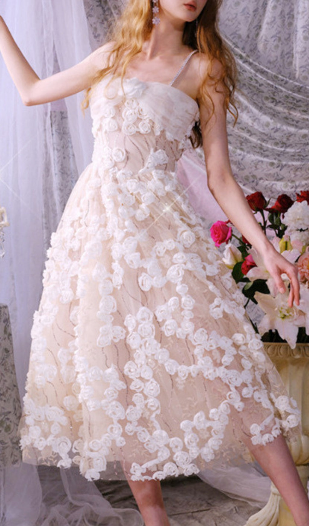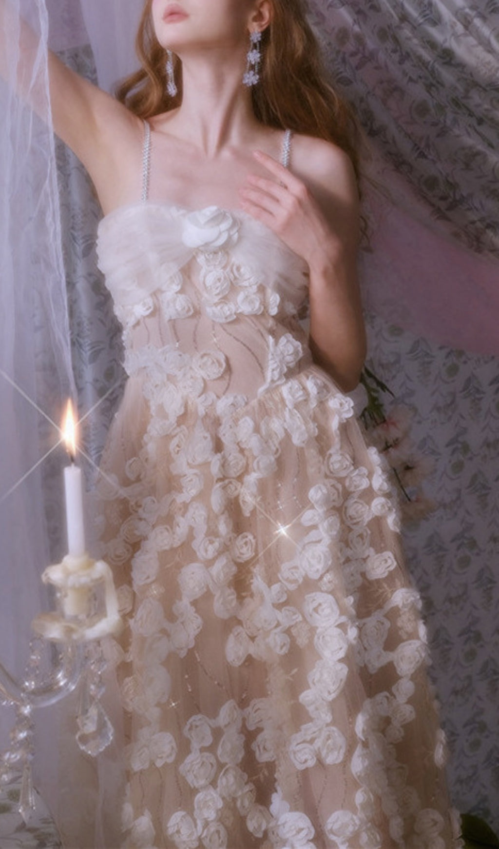 APHRA FLORAL RHINESTONE MIDI DRESS