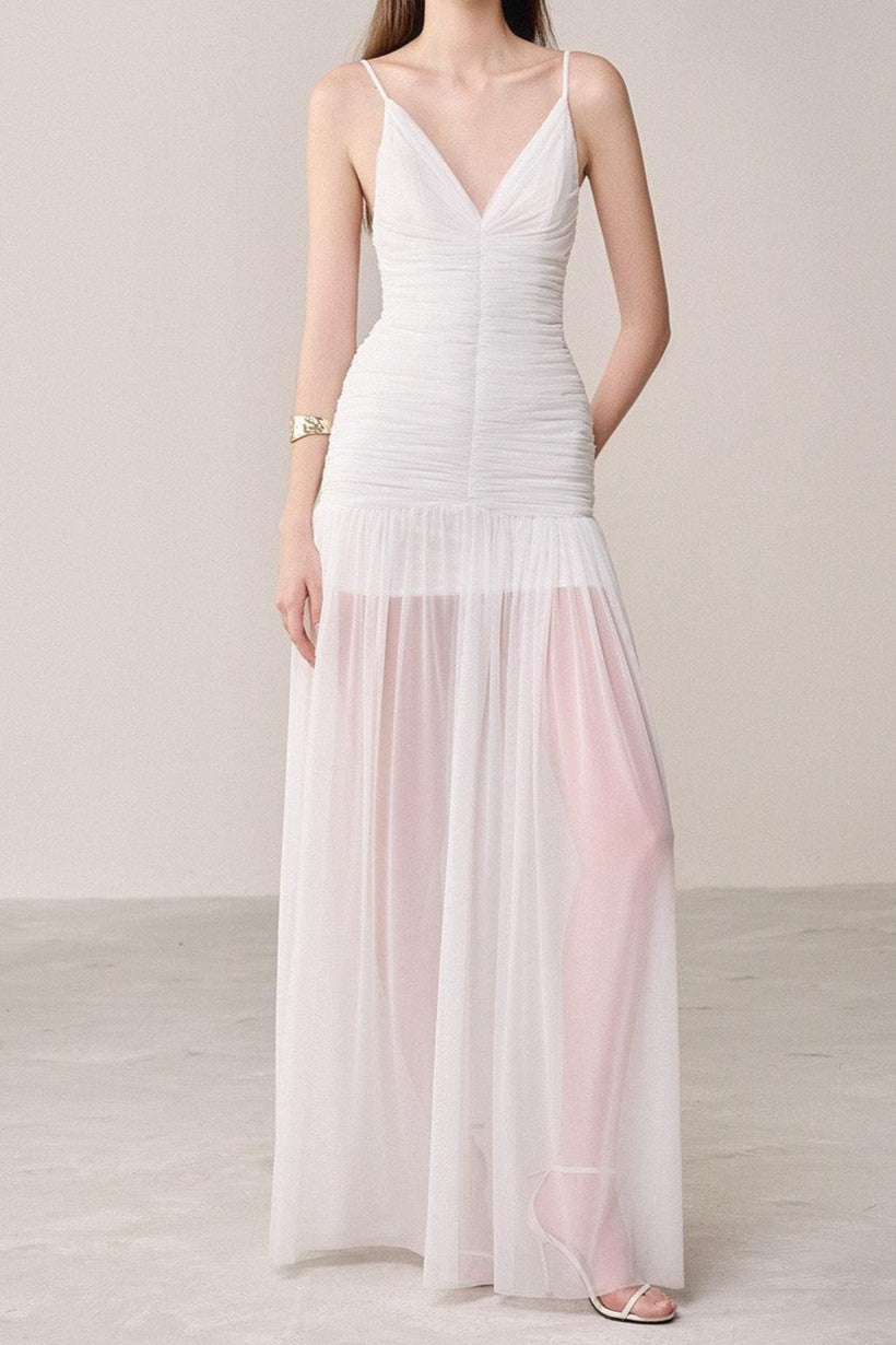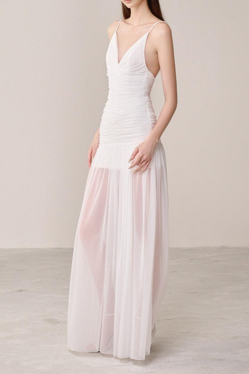 belen Drop Waist Spaghetti Strap Organza Maxi Dress in white