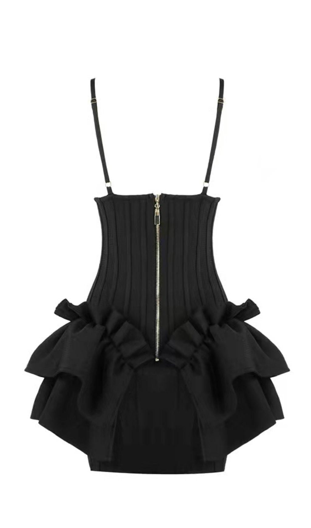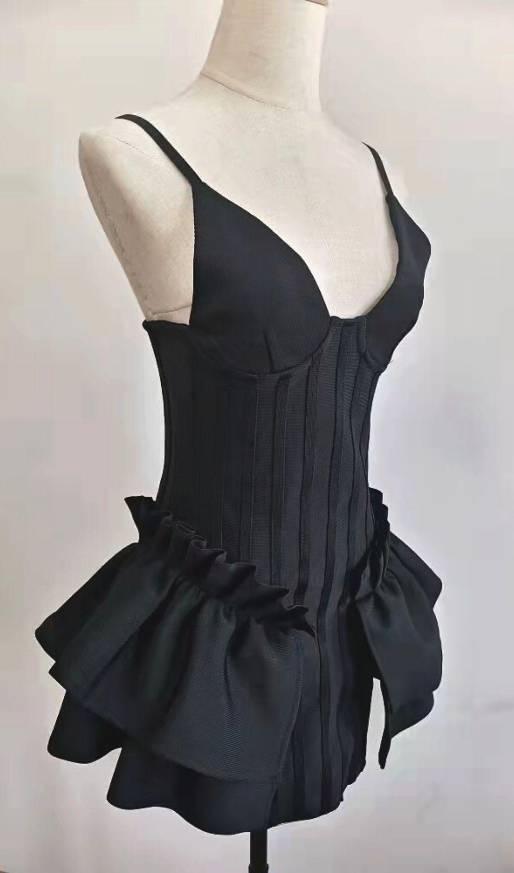 FRILLY BANDAGE MINI DRESS IN BLACK