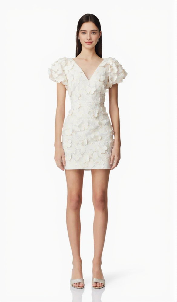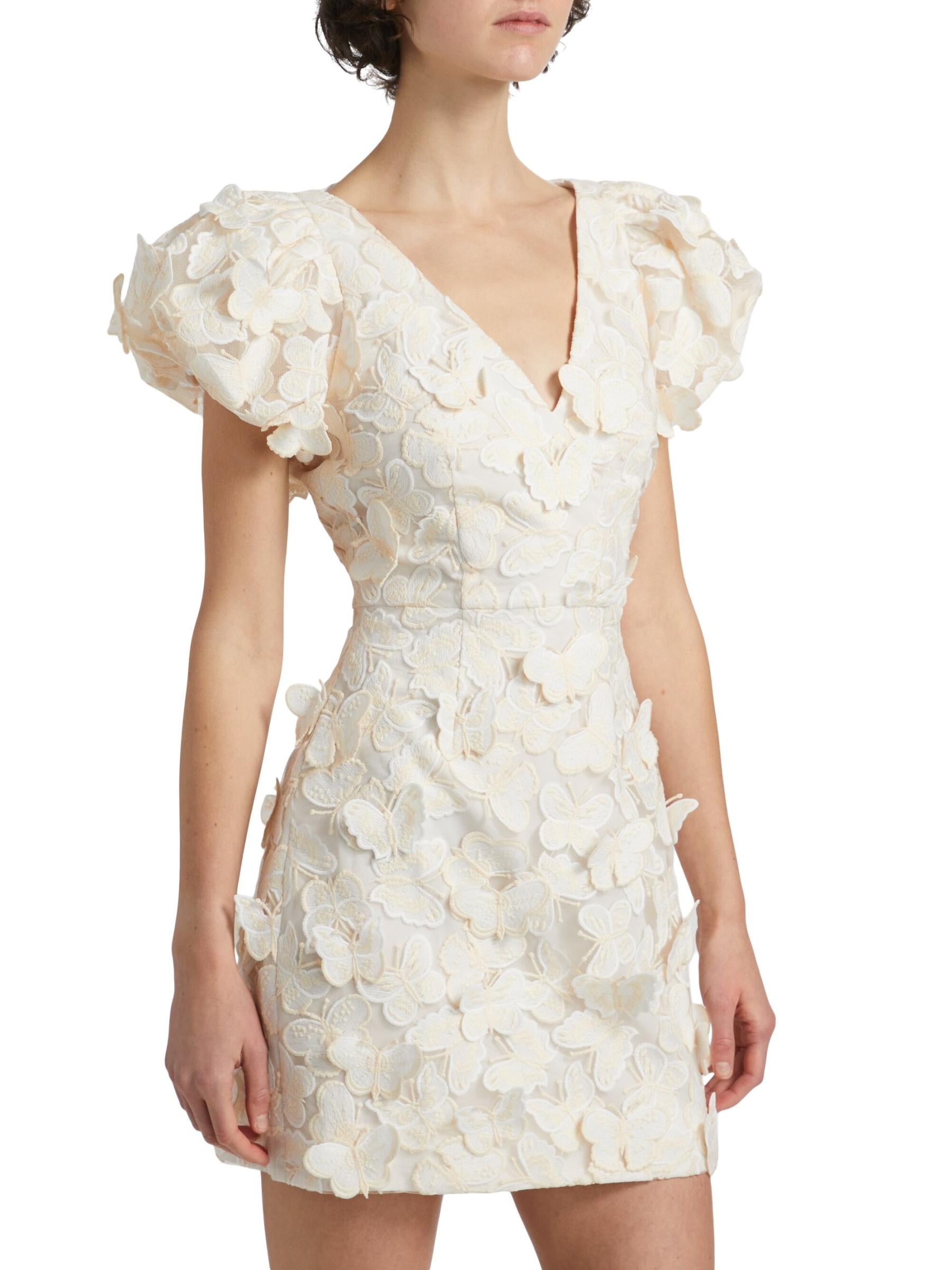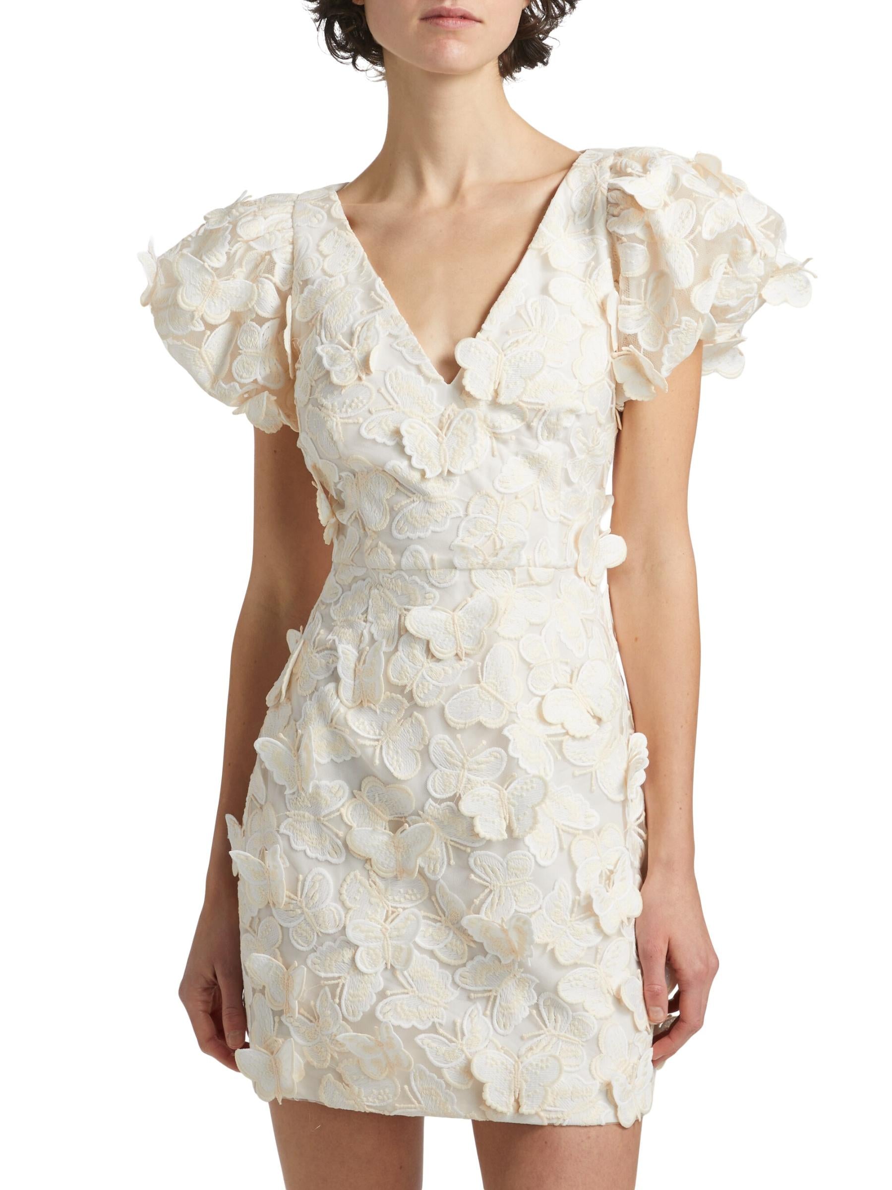 Butterfly Appliqué Mini dress in cream